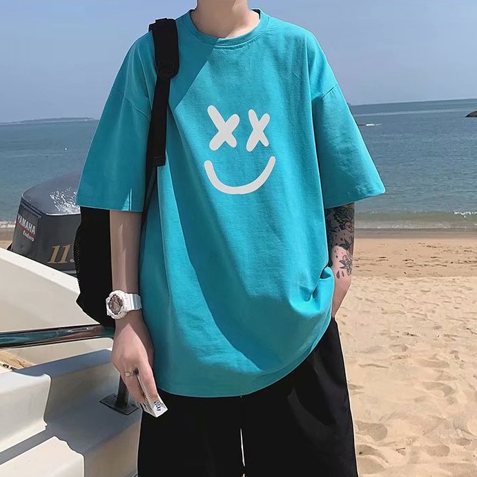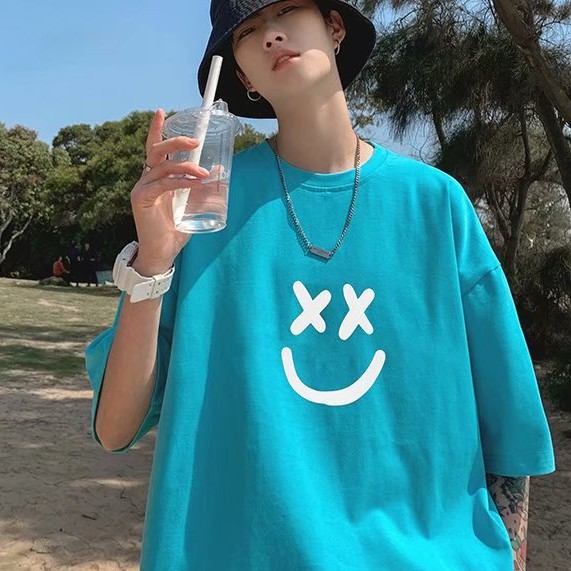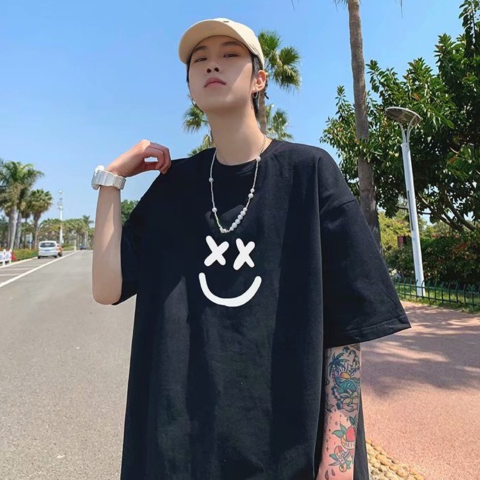 夏季笑臉印花短袖T恤 新款 日系 潮牌 短袖 男生T恤 韓版 潮流 學生寬鬆 ins 短袖上衣 短T(KPT528)