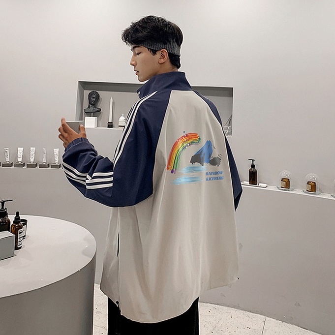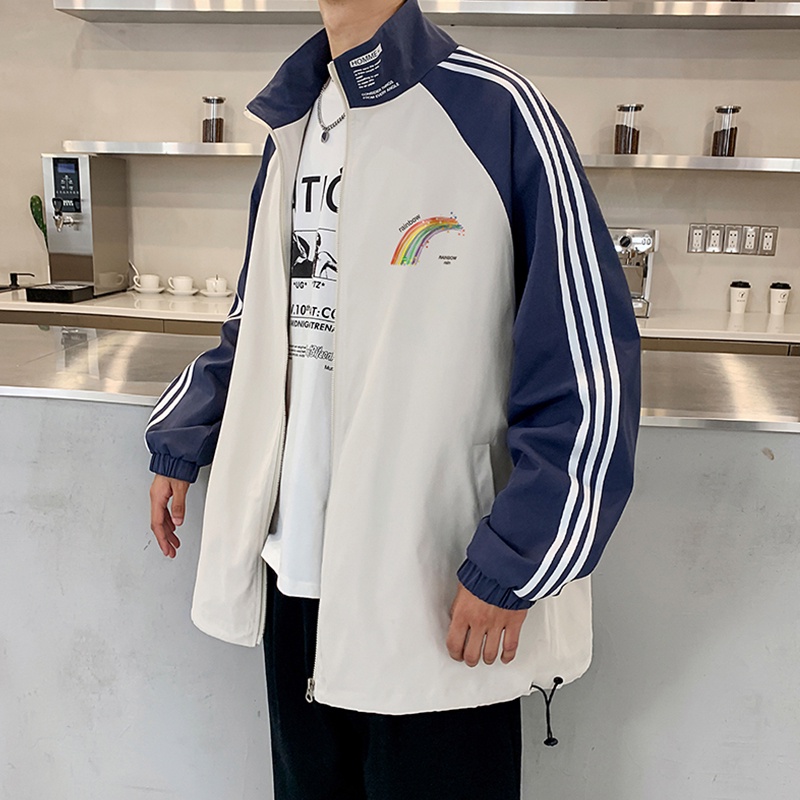 春秋新款彩虹三線外套 港風 ins 情侶 運動 男 夾克 潮流 休閒外套 學生上衣 長袖外套 上衣 外套(GZ100)