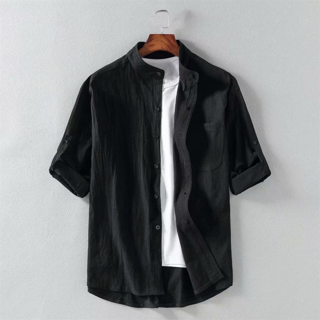 棉麻亨利領7分袖襯衫 青年襯衣 立領襯衫 7分袖襯衫 休閒百搭 青年襯衣 薄外套 短袖襯衫 (HS110)【壹號站】