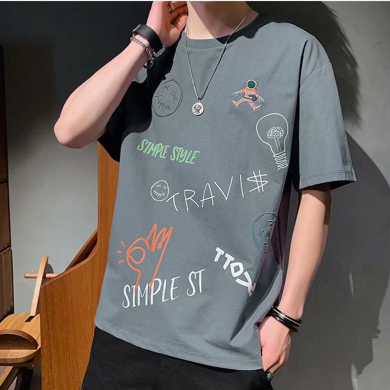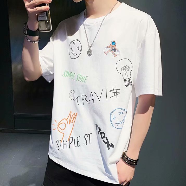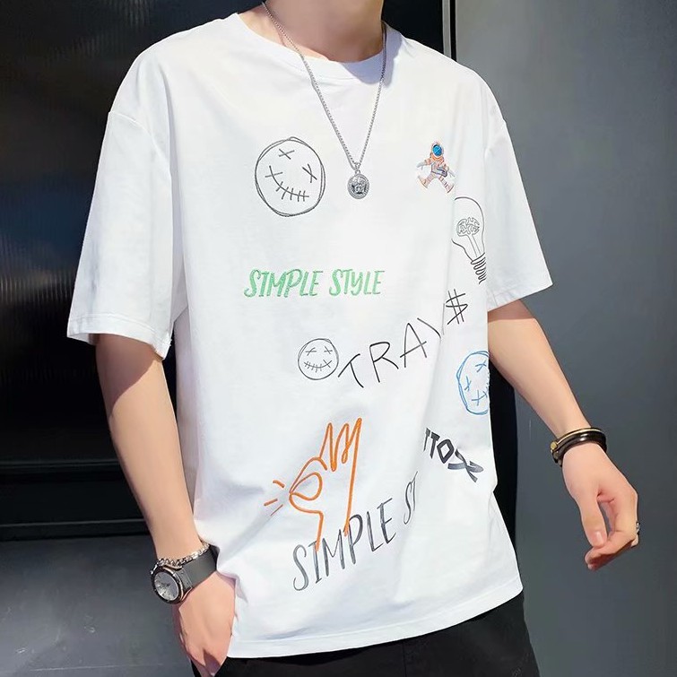 夏季 新款 日系 復古 潮牌 短袖 男生T恤 韓版 學生寬鬆 ins 嘻哈 短袖上衣 T恤 短T(LR006)【壹號站】