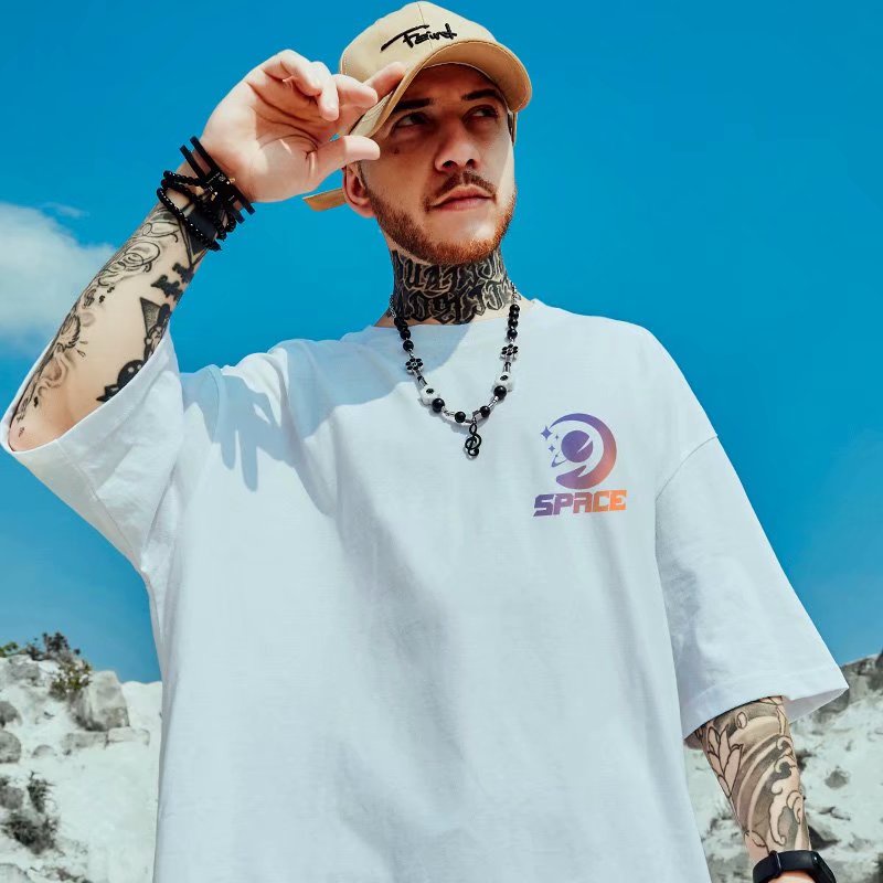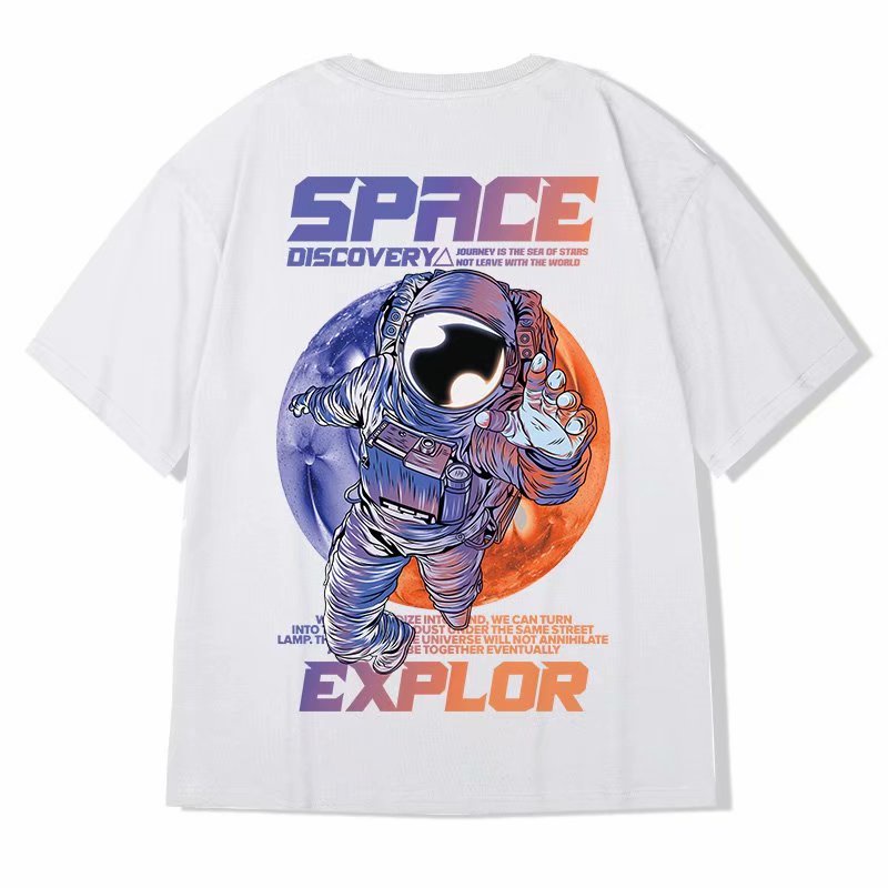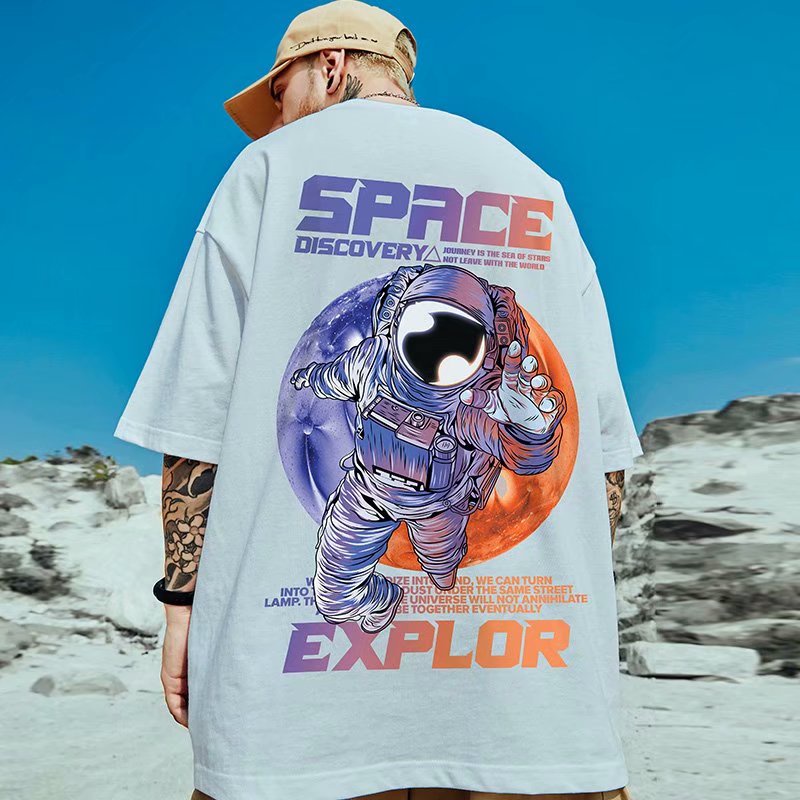 M-5XL潮流夏季個性印花短袖T恤 寬鬆情侶 個性印花五分袖T恤衫 韓版時尚潮流情侶裝百搭短t 男女T恤(GFT515)
