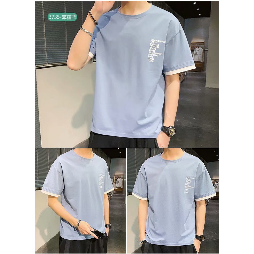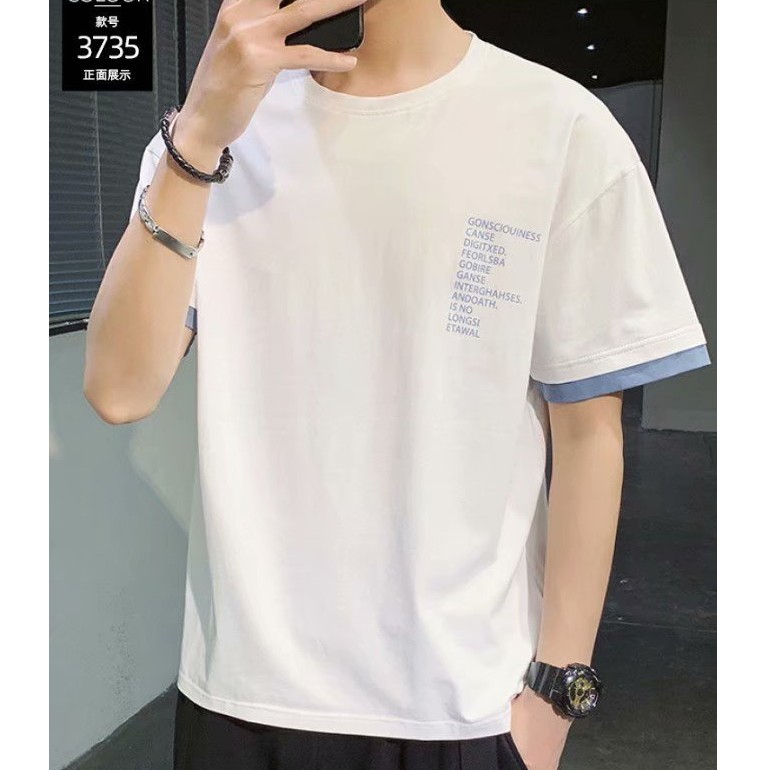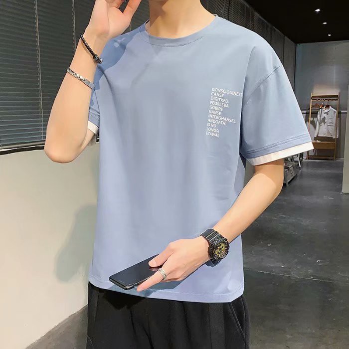 潮流短T 假兩件印花T恤 超帥短T 寬版 拼接 穿搭必備 素T T恤 短T 男生著衣(LRA735)【壹號站】