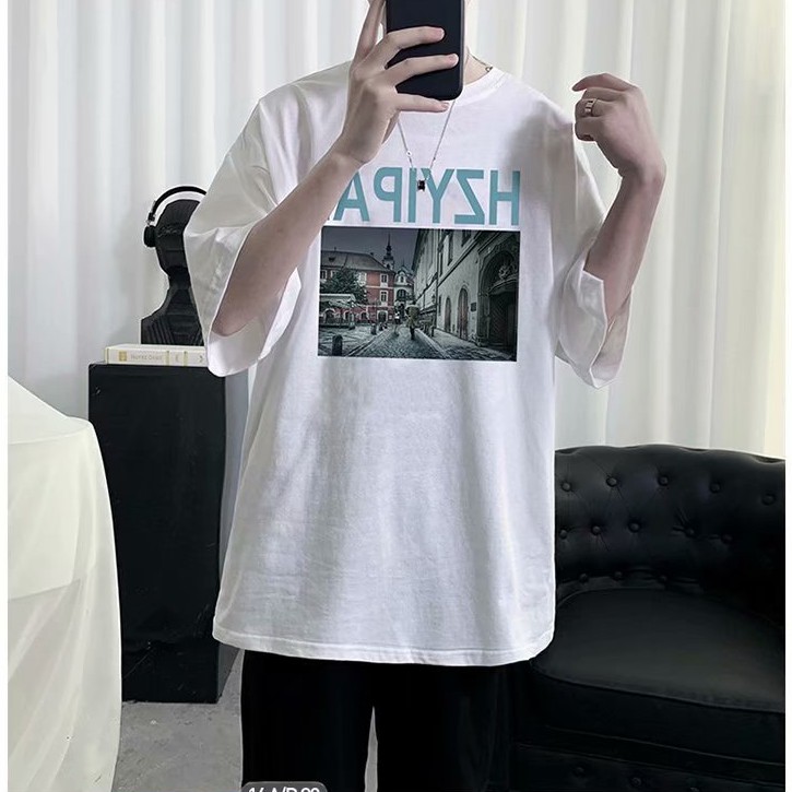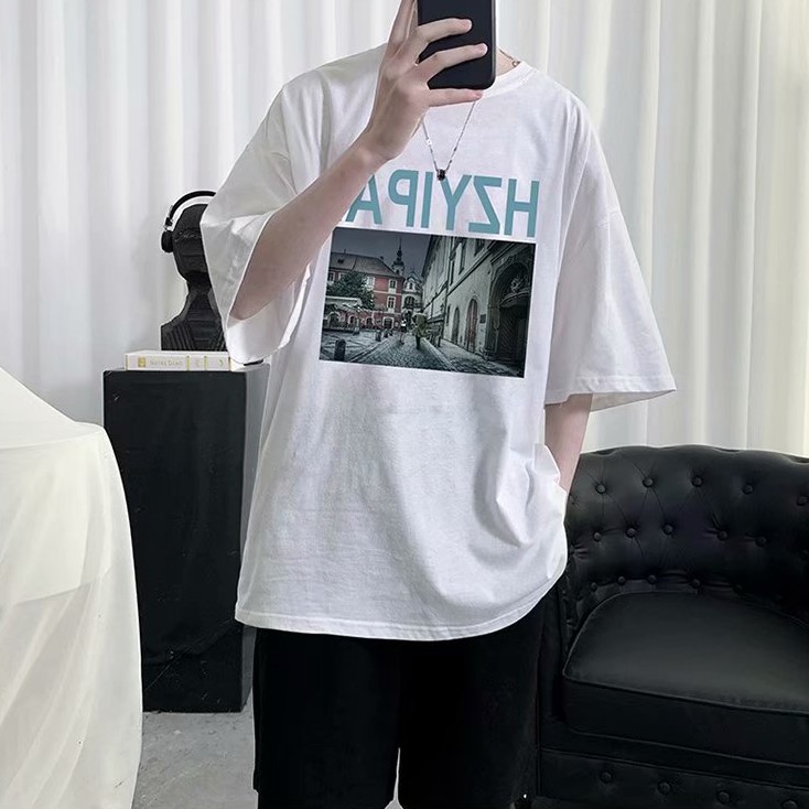 M-8XL 韓版夏季衣服 素t 潮流 日系 短袖T恤 男生 寬鬆 嘻哈 大尺碼 情侶 五分袖 男t 短T(GFT88)