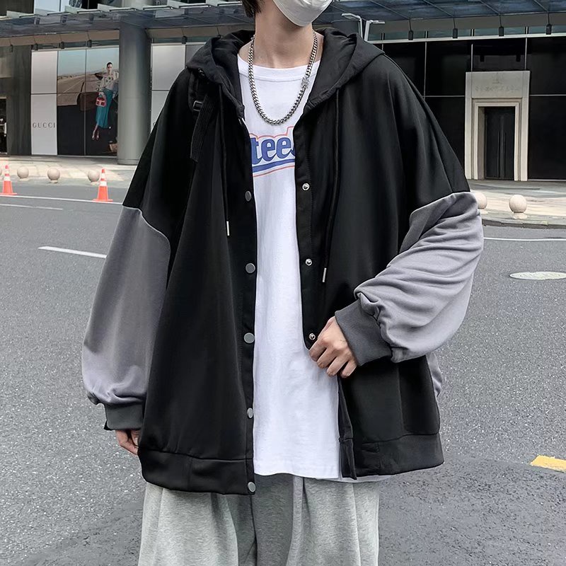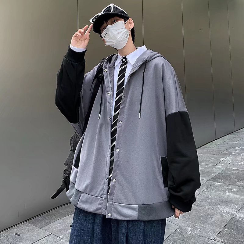 衛衣拼接外套 韓版薄款外套 學生情侶裝寬鬆連帽外套 休閒外套正韓外套 長袖開衫外套情侶外套(LTT8078)