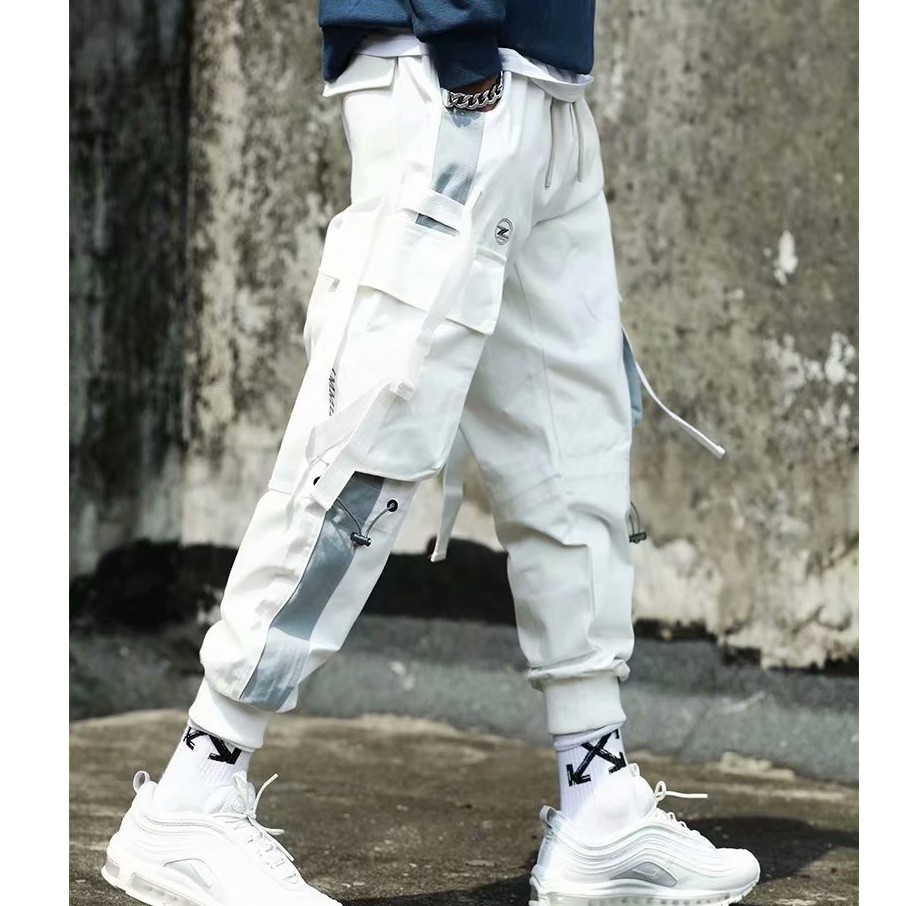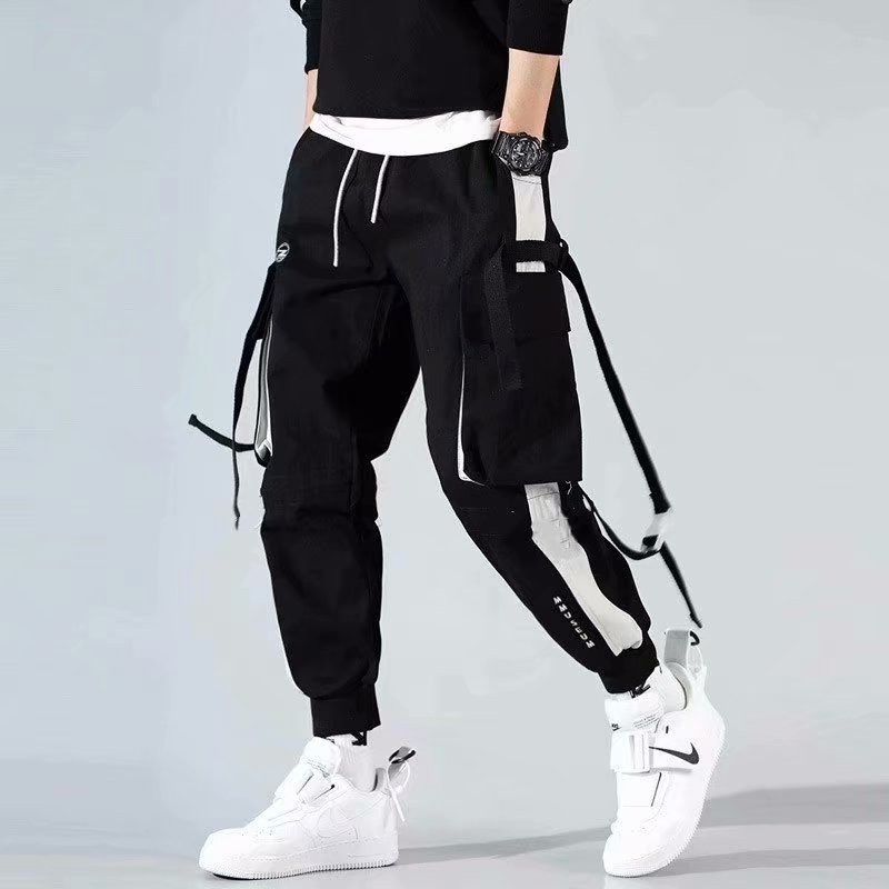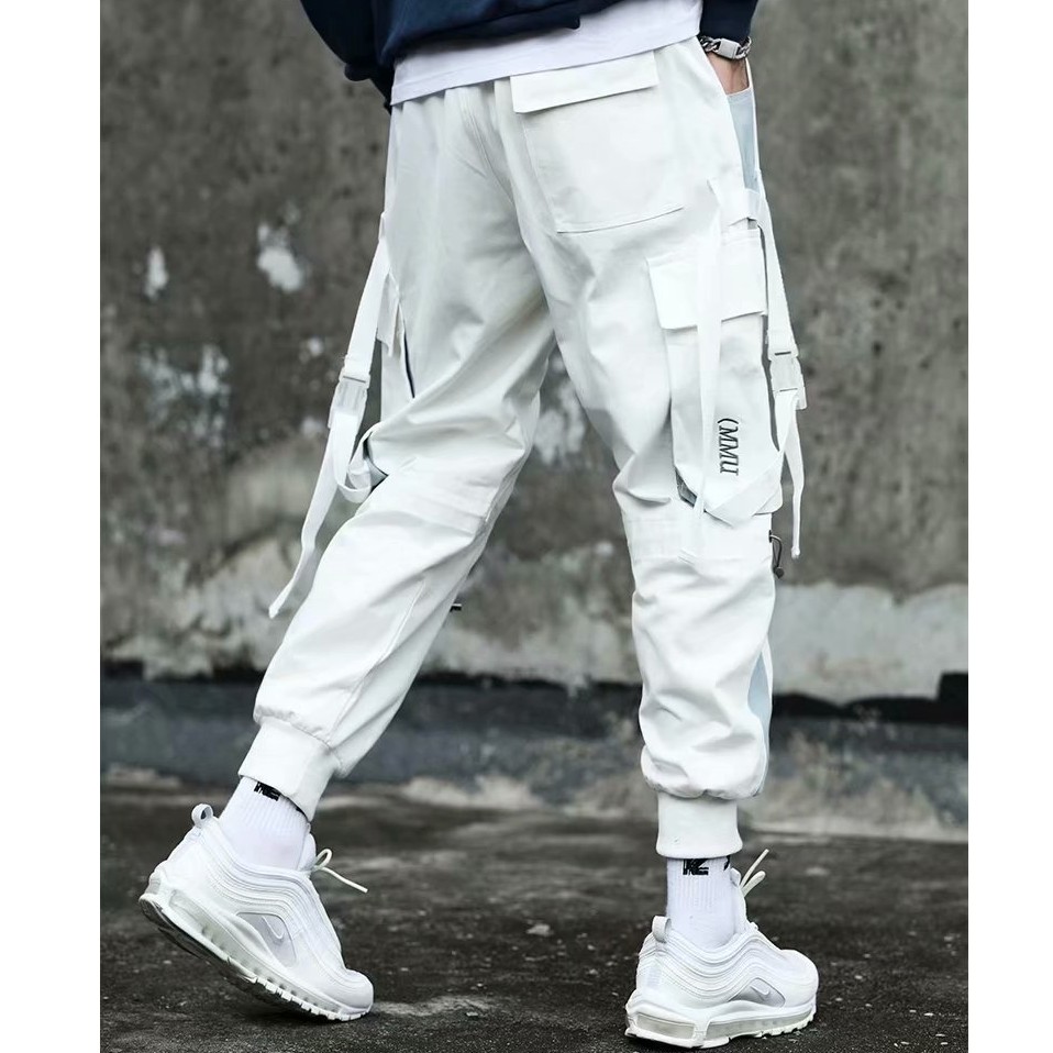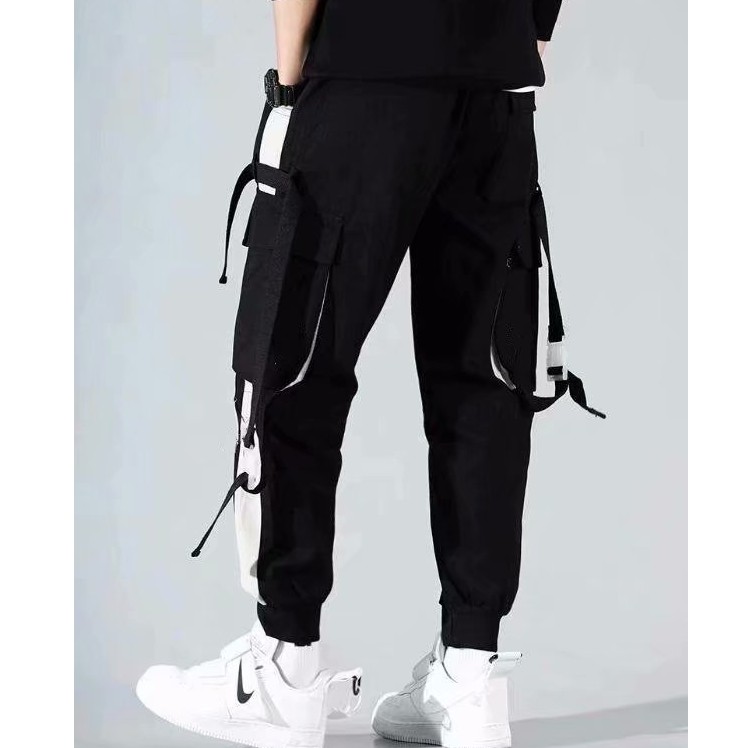潮褲 飄帶工裝褲 側口袋長褲 寬鬆褲 工裝長褲 多口袋工裝褲 褲子男 軍裝褲 棉褲 (LXK18)【壹號站】