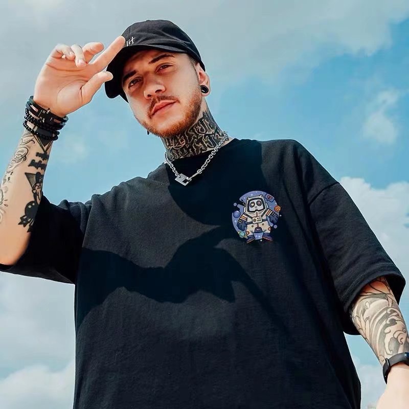 M-5XL潮男必備短袖 韓版短袖港風短袖T恤 原宿風短袖T恤男 印花T恤 男女衣著 情侶 短T(HQG56)【壹號站】