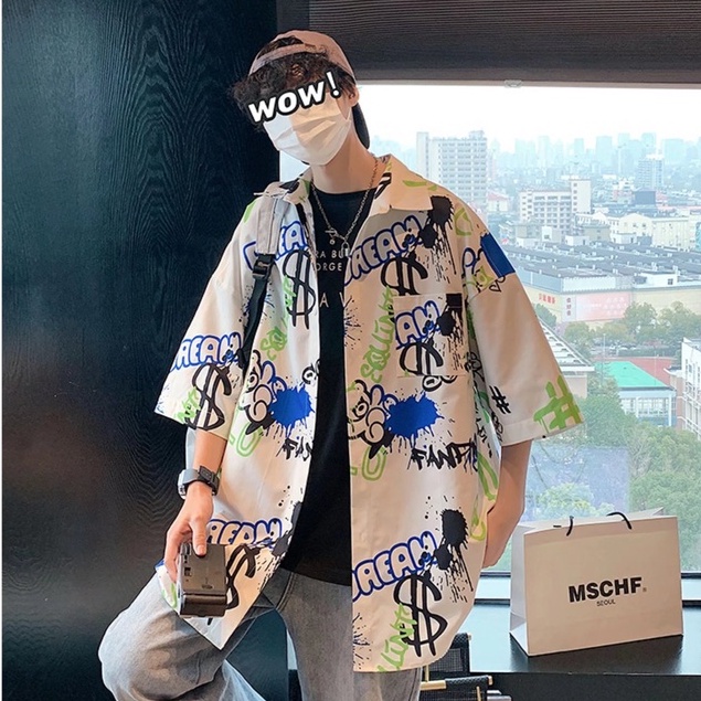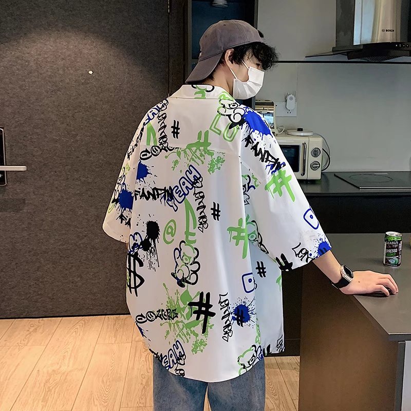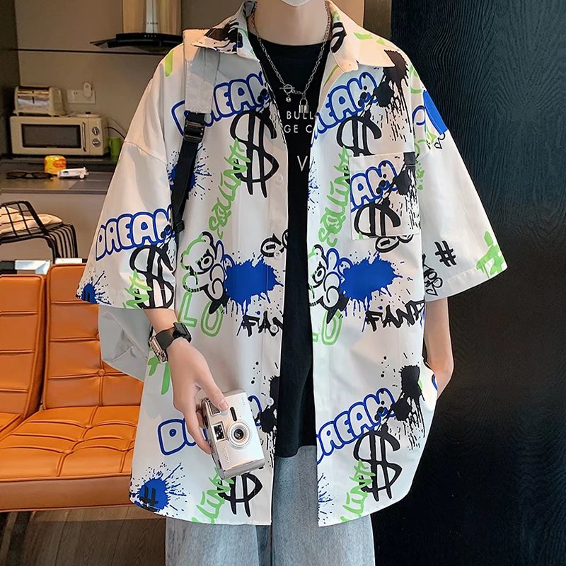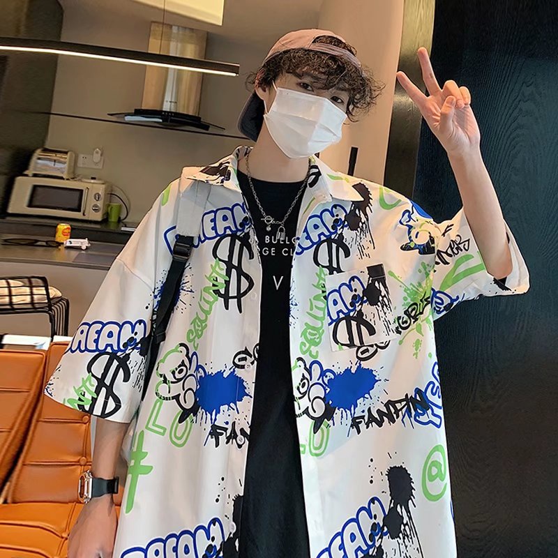 小熊襯衫不規則 休閒襯衫 滿版 花襯衫 百搭 日式 短袖 寬鬆襯衫 情侶襯衫 短袖襯衫 襯衫男【壹號站】(CCD10)