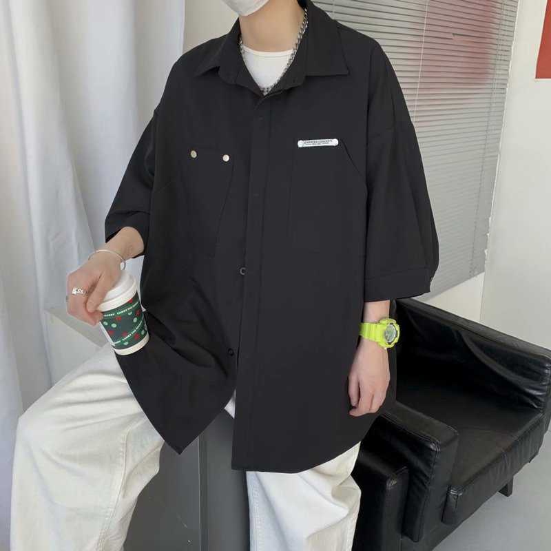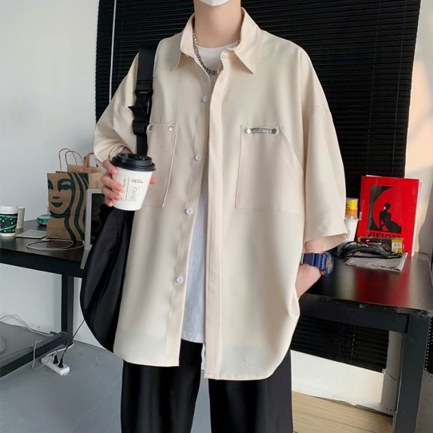 工裝短袖襯衫 夏季港風襯衫短袖 男士休閒寬鬆襯衣外套痞帥情侶男女襯衫 百搭 襯衫 男生衣著(JHP525)【壹號站】