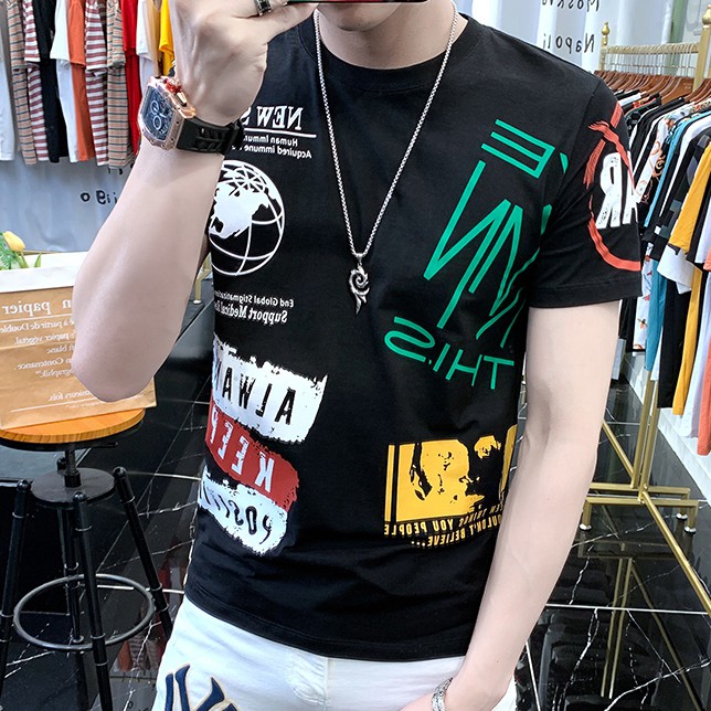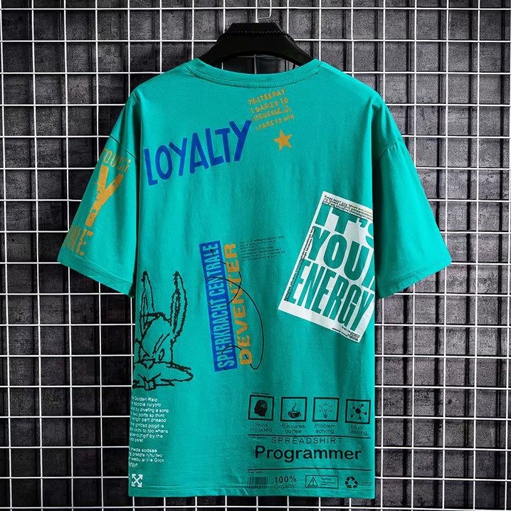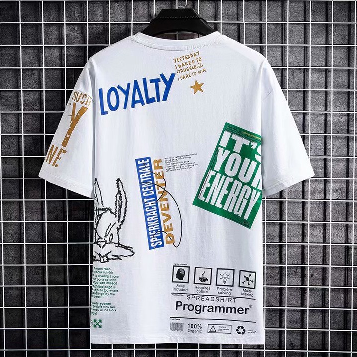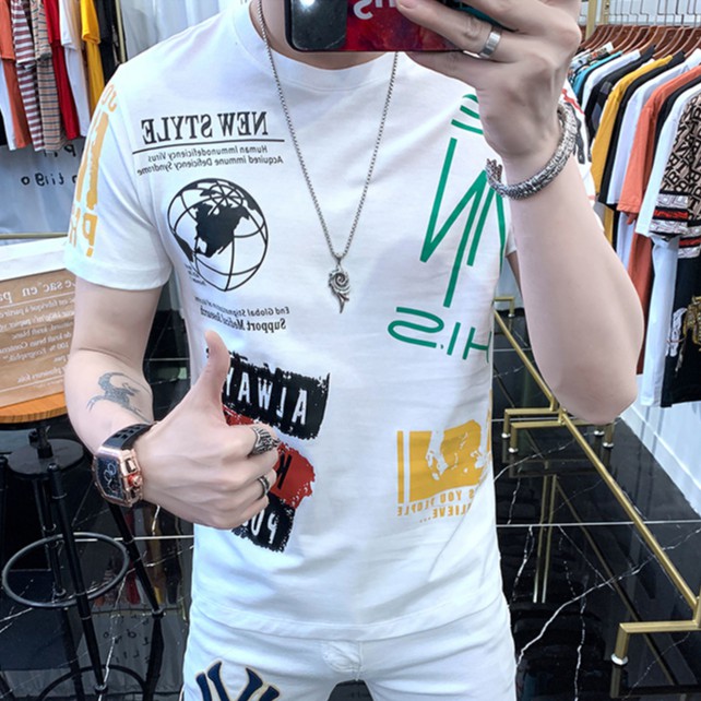 潮男短袖T恤男潮牌ins滿版上衣寬鬆短袖潮流青年百搭5五分袖歐美T恤 短T 情侶 T恤(WLW602)【壹號站】