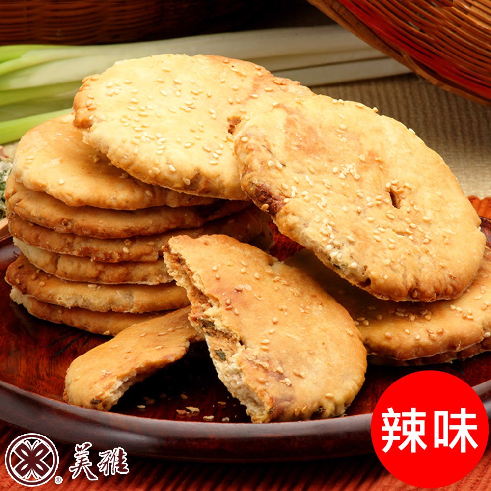 美雅宜蘭餅 宜蘭三星蔥古法燒餅(辣味)x3桶【箱出商品送蜂蜜芝麻牛舌餅1包】