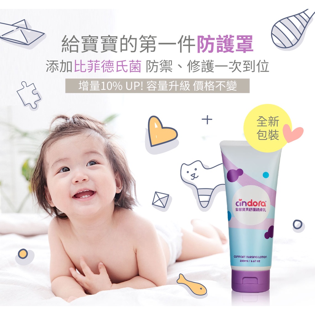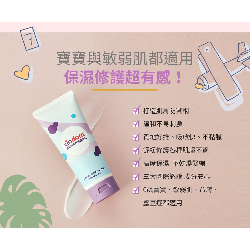 Cindora 馨朵拉 紫馨寶貝舒護親膚乳200ml (敏弱肌、新生兒適用,無香味,好吸收不粘膩)
