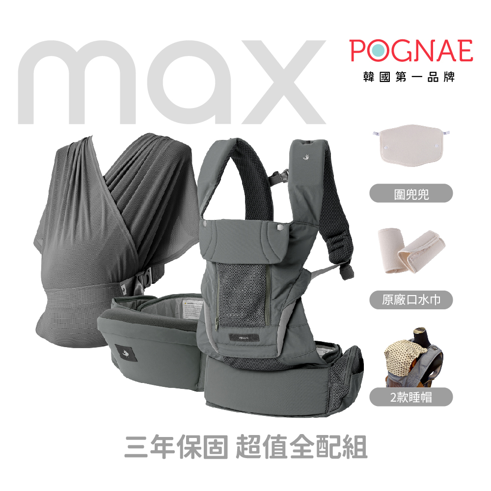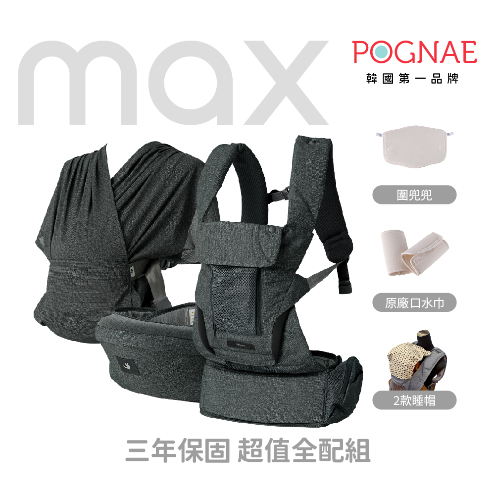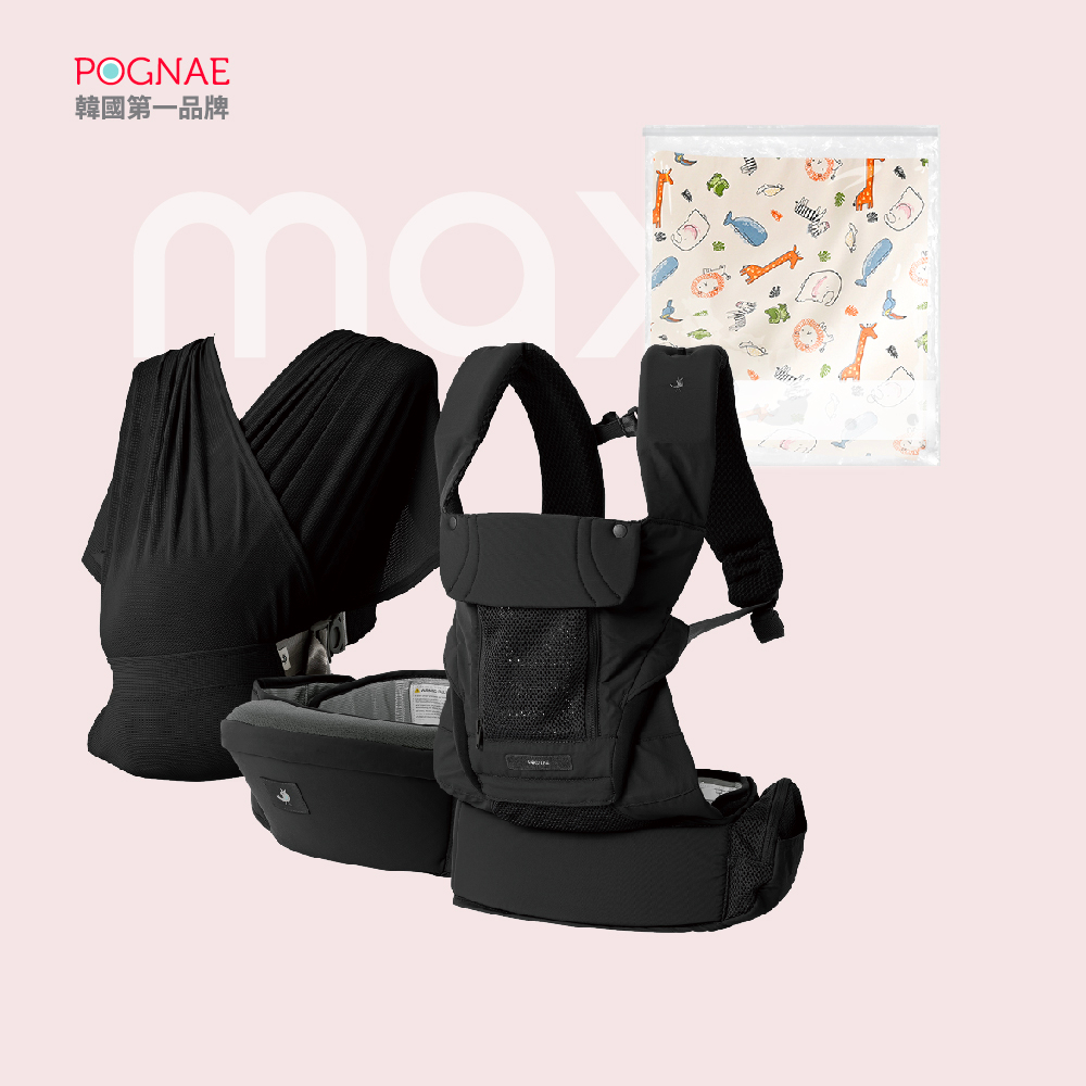 POGNAE韓國國民背巾|外出換尿布旗艦組|四合一MAX背巾+防水尿布墊 (50x70cm)|適合亞洲身形 新生兒可用