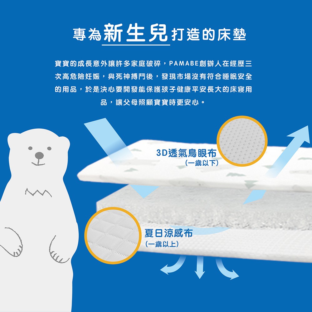 【PAMABE】★ 70x130x5cm嬰兒床墊(二合一)德國IGR護脊 水洗 透氣 寶寶床墊 嬰兒床 防蹣 防蟎 涼感