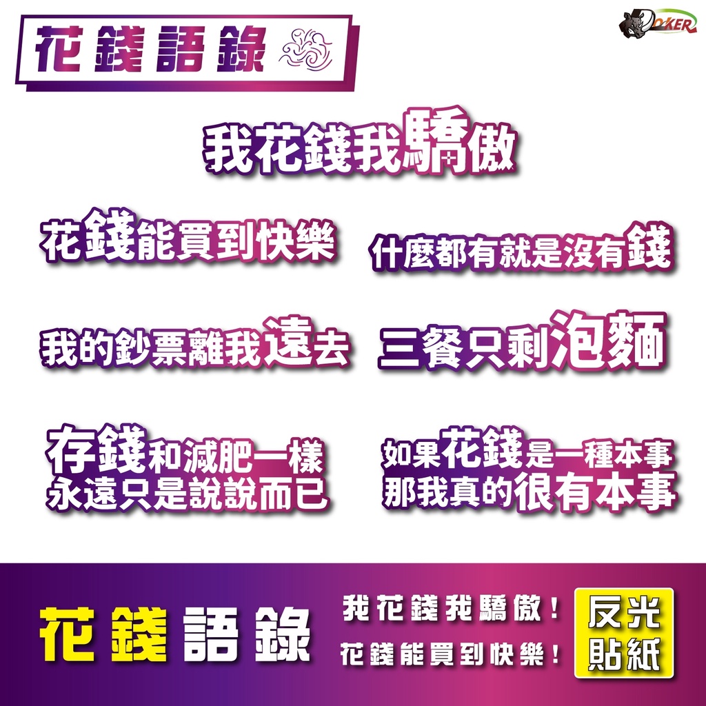 [鍍客doker]3M 反光貼紙 [ 花錢語錄 ]反光貼 車貼 安全帽貼紙 行李箱貼紙 貼紙 防水 車貼 外送 機車
