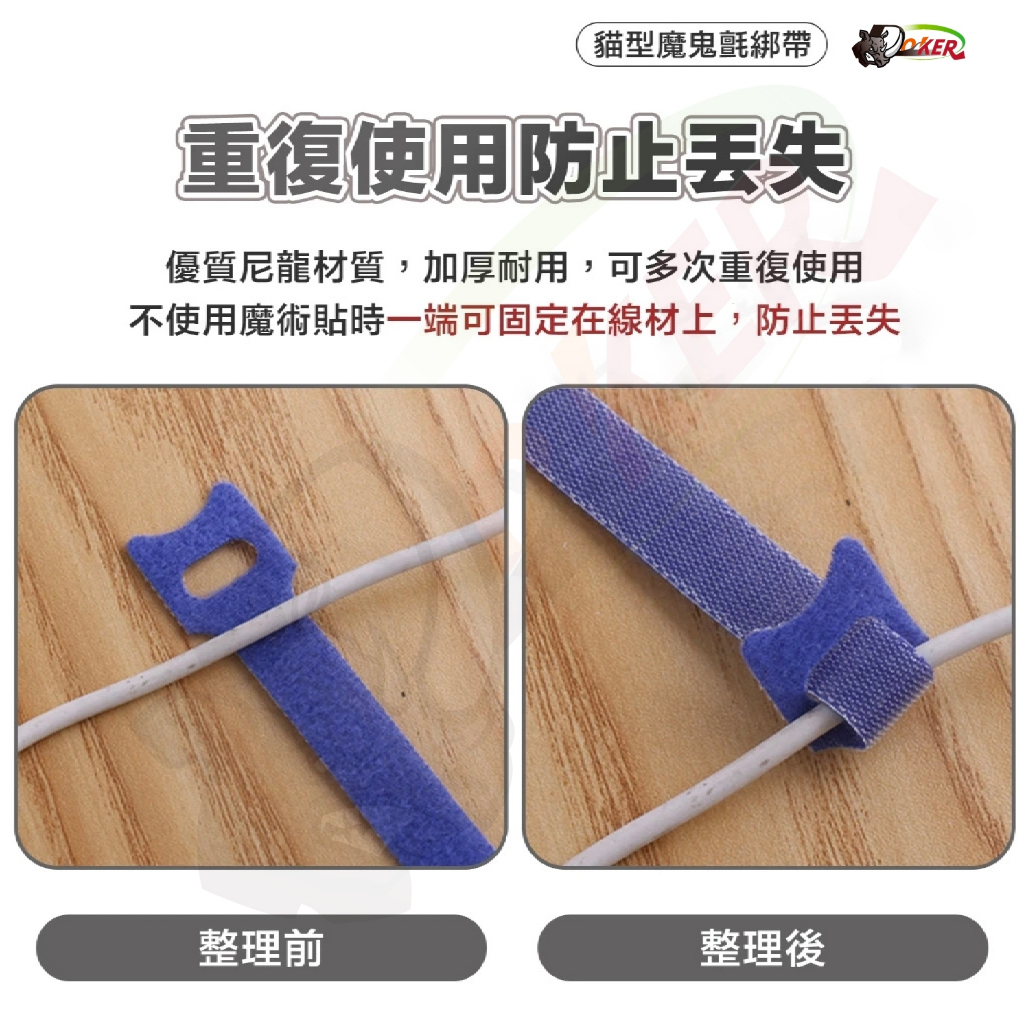貓型魔鬼氈束帶 可重複使用束帶 束帶 鬆緊可調 扎線帶 可退出重複使用 重覆用 活用式 塑膠束帶 鍍客doker