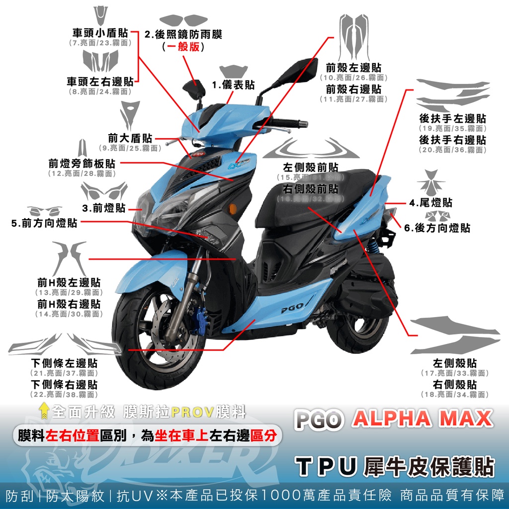PGO alpha max 脂肪族 犀牛皮 儀表貼 螢幕貼 保護膜 防護膜 抗刮 抗UV 鍍客doker