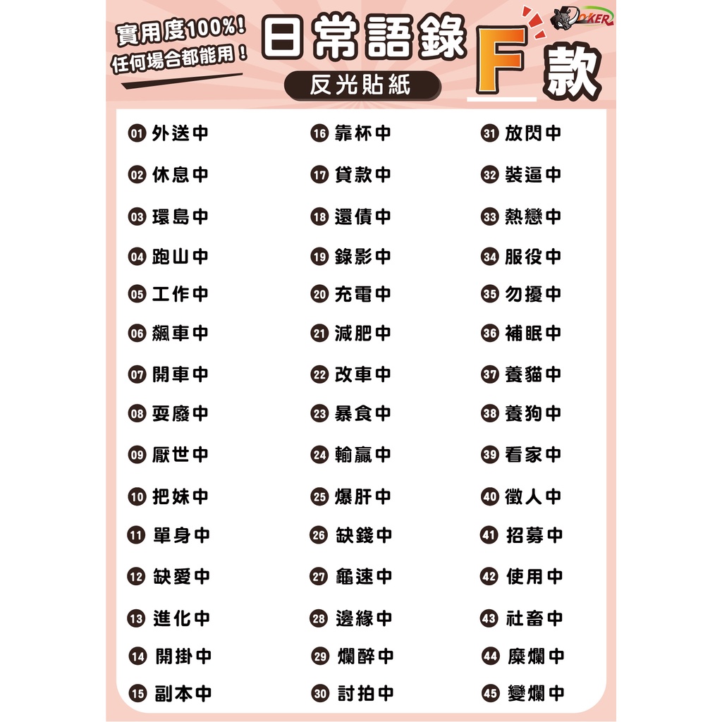 浮雕 貼紙[日常語錄F款]車貼 安全帽貼紙 行李箱貼紙 貼紙 防水 車貼 造型 實用 [鍍客doker]