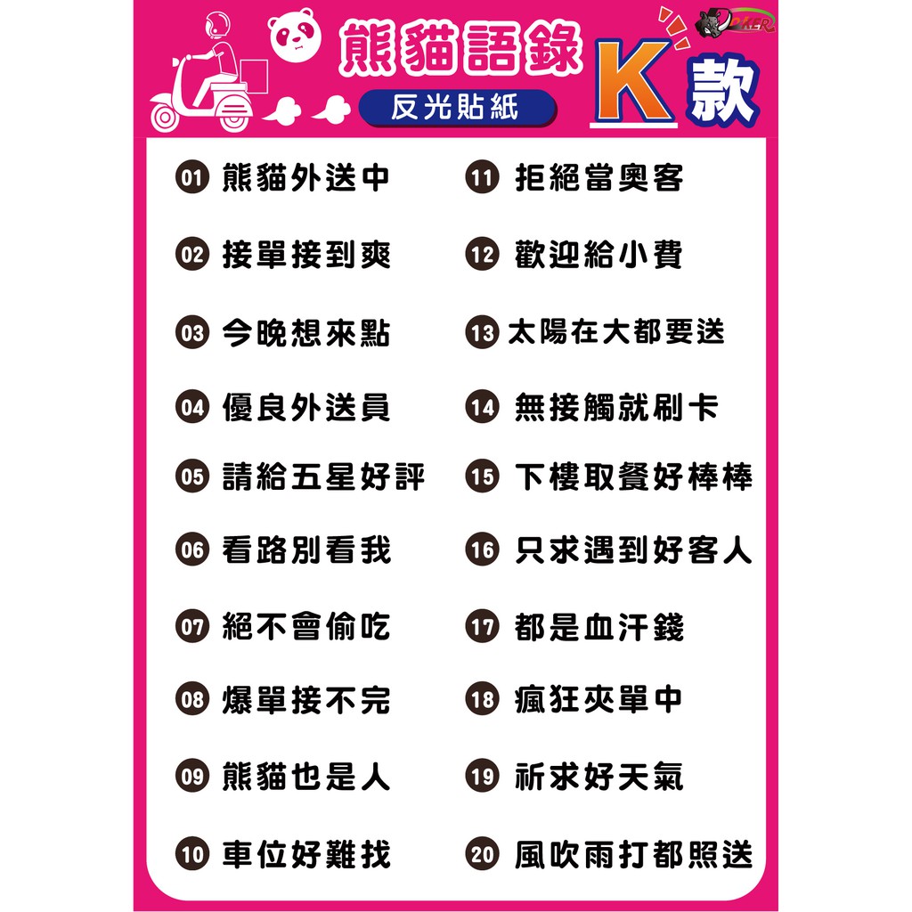 3M 反光貼紙 [熊貓語錄K款]反光貼 車貼 安全帽貼紙 行李箱貼紙 貼紙 防水 車貼 熊貓 外送[鍍客doker]