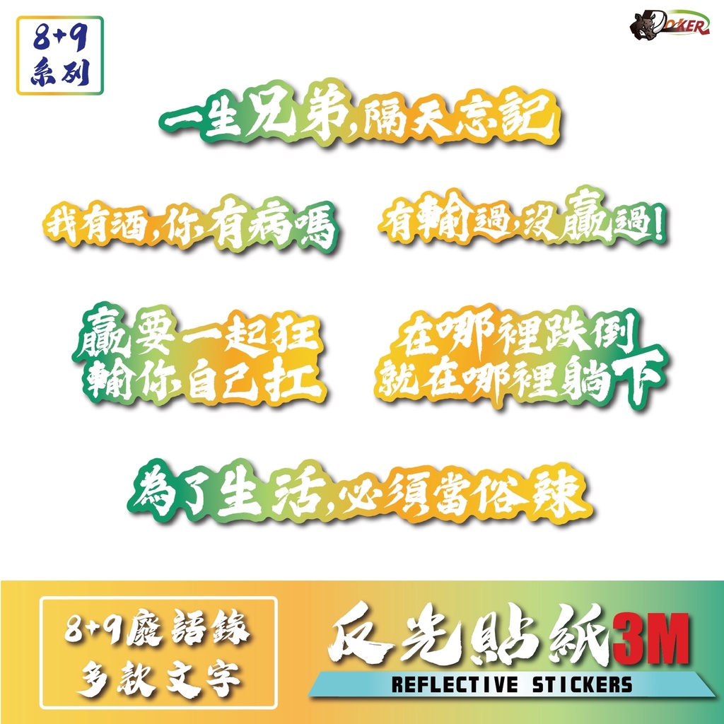 3M 反光貼紙 [ 8+9廢語錄 ]反光貼 車貼 安全帽 行李箱 貼紙 防水 車貼 熊貓 吳柏毅[鍍客doker]