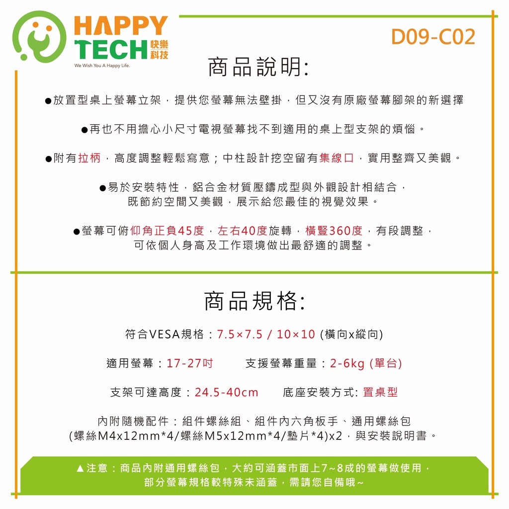 【HappyTech】D09-C02 雙螢幕 機械彈簧高度調整 桌上型 液晶 觸控螢幕 電腦螢幕架 置桌型 17~27吋