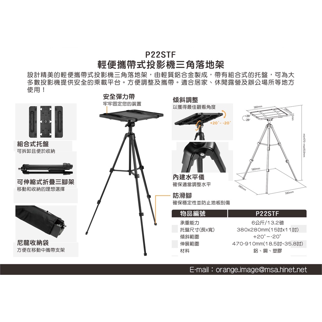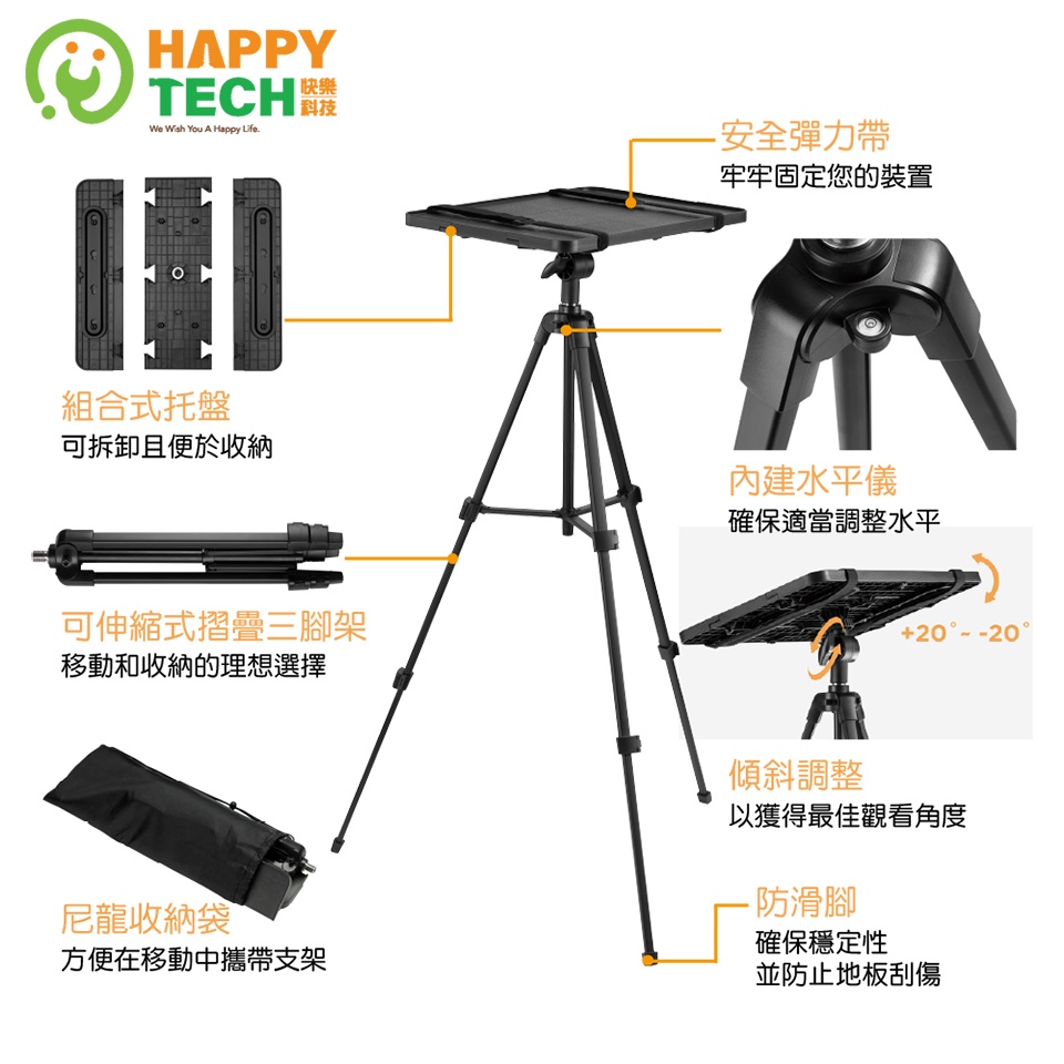 【HappyTech】P22STF多功能萬用投影機腳架 投影機落地架 可折疊 伸縮 調整角度 露營愛用