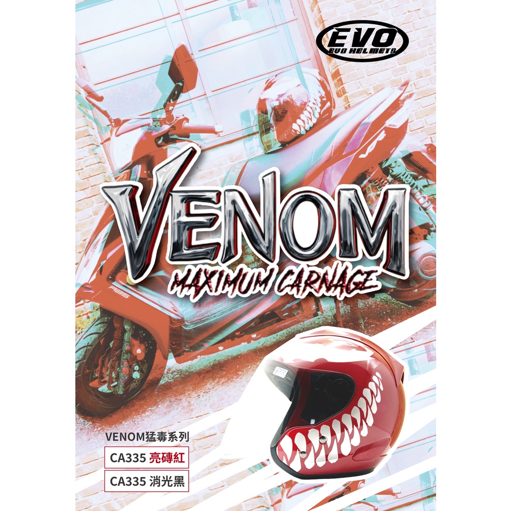 EVO CA335 漫威猛毒可拆R帽造型帽 原廠 3/4罩式 安全帽 正版授權 全拆式 獨家設計【智同官方旗艦店】