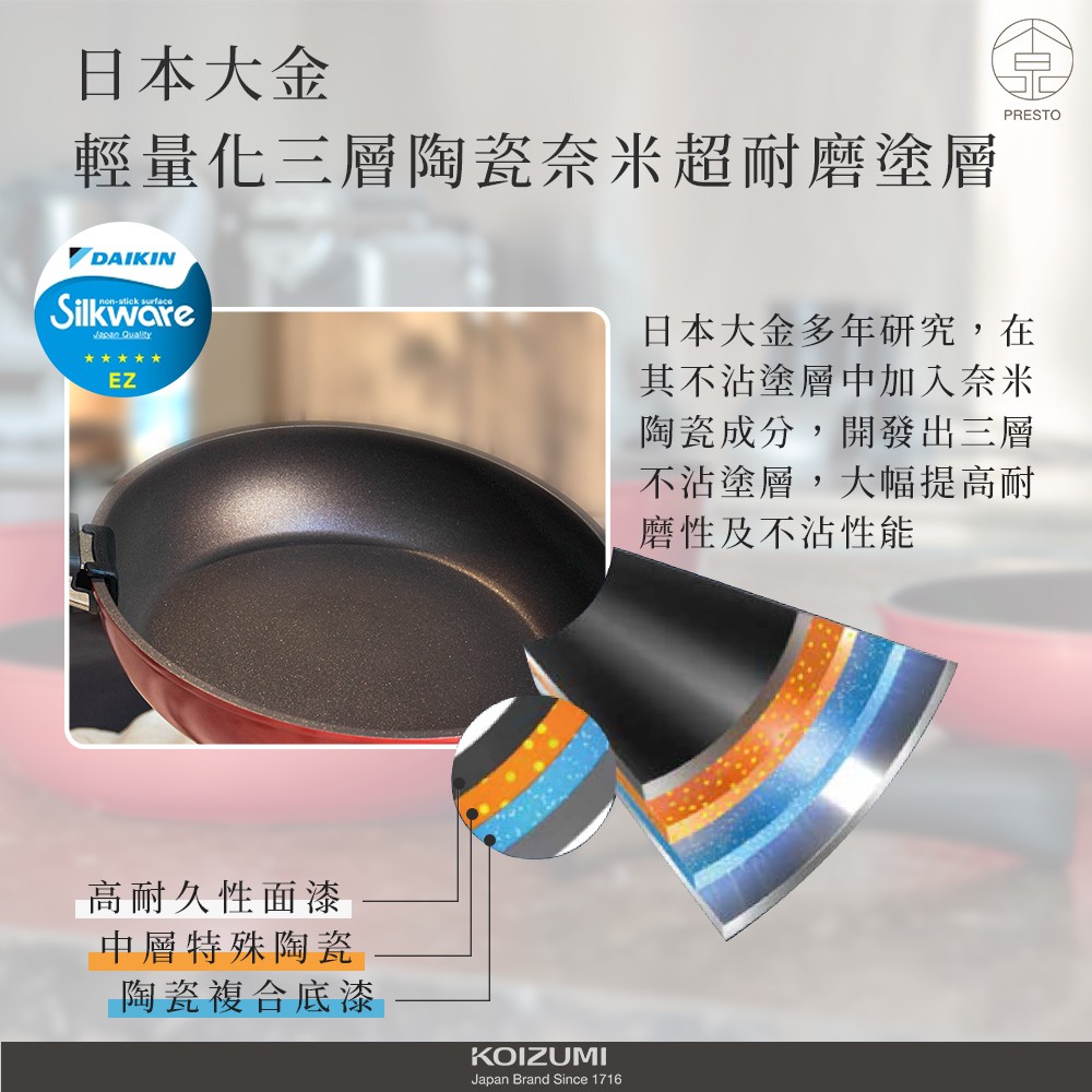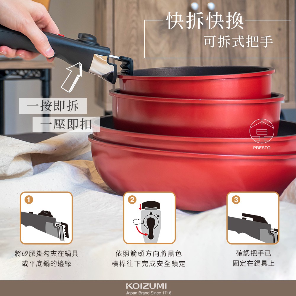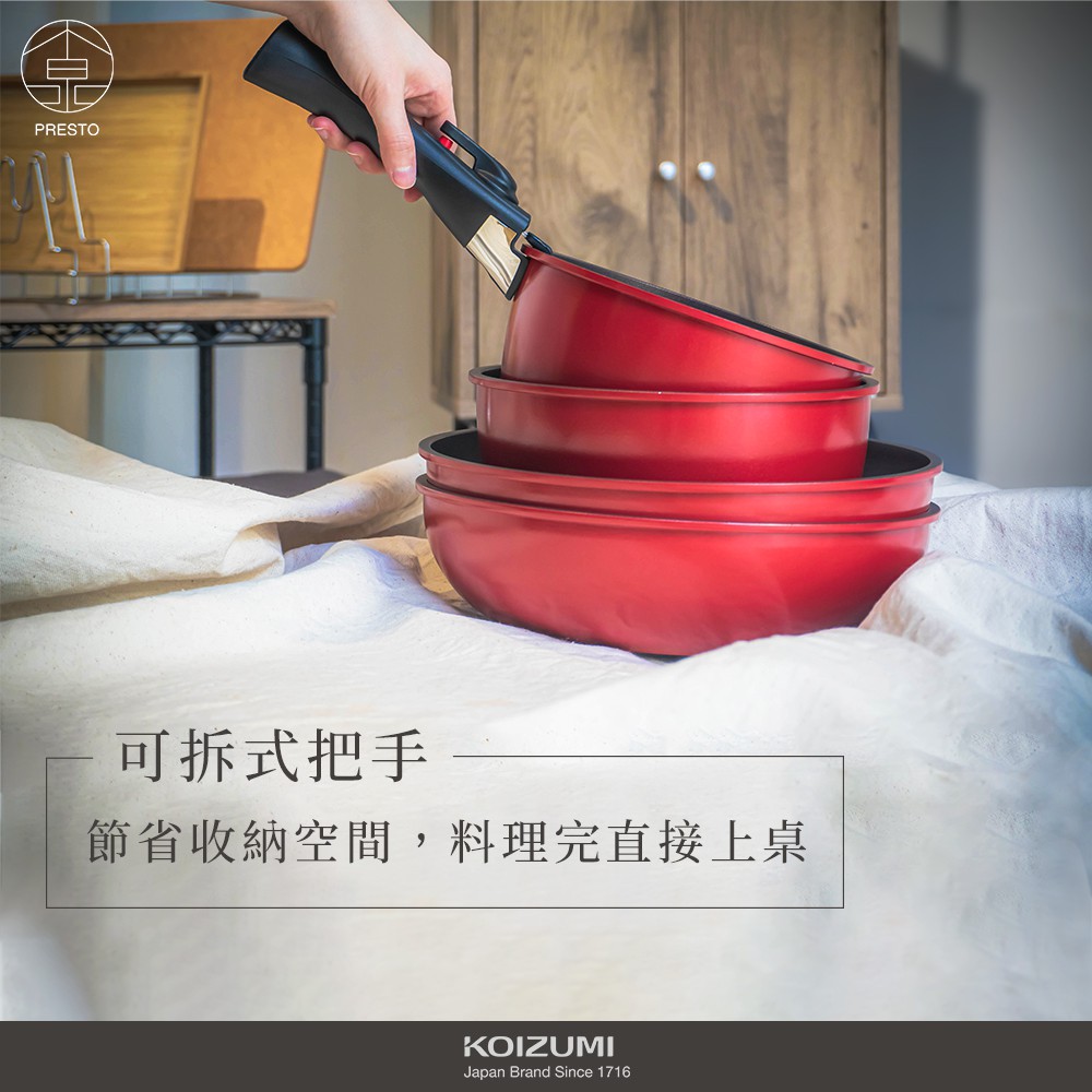 日本小泉KOIZUMI 可拆式不沾鑽石鍋C06 鍋具 不沾鍋 露營 野營 戶外