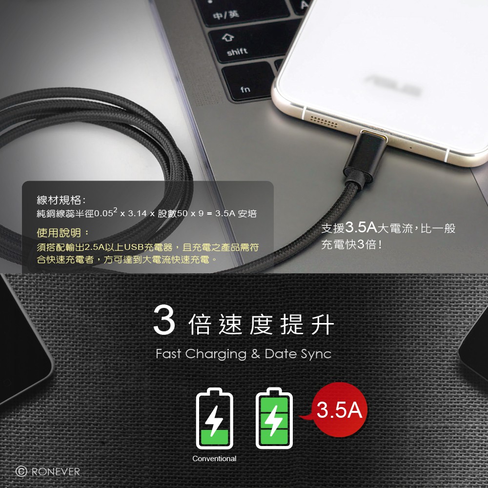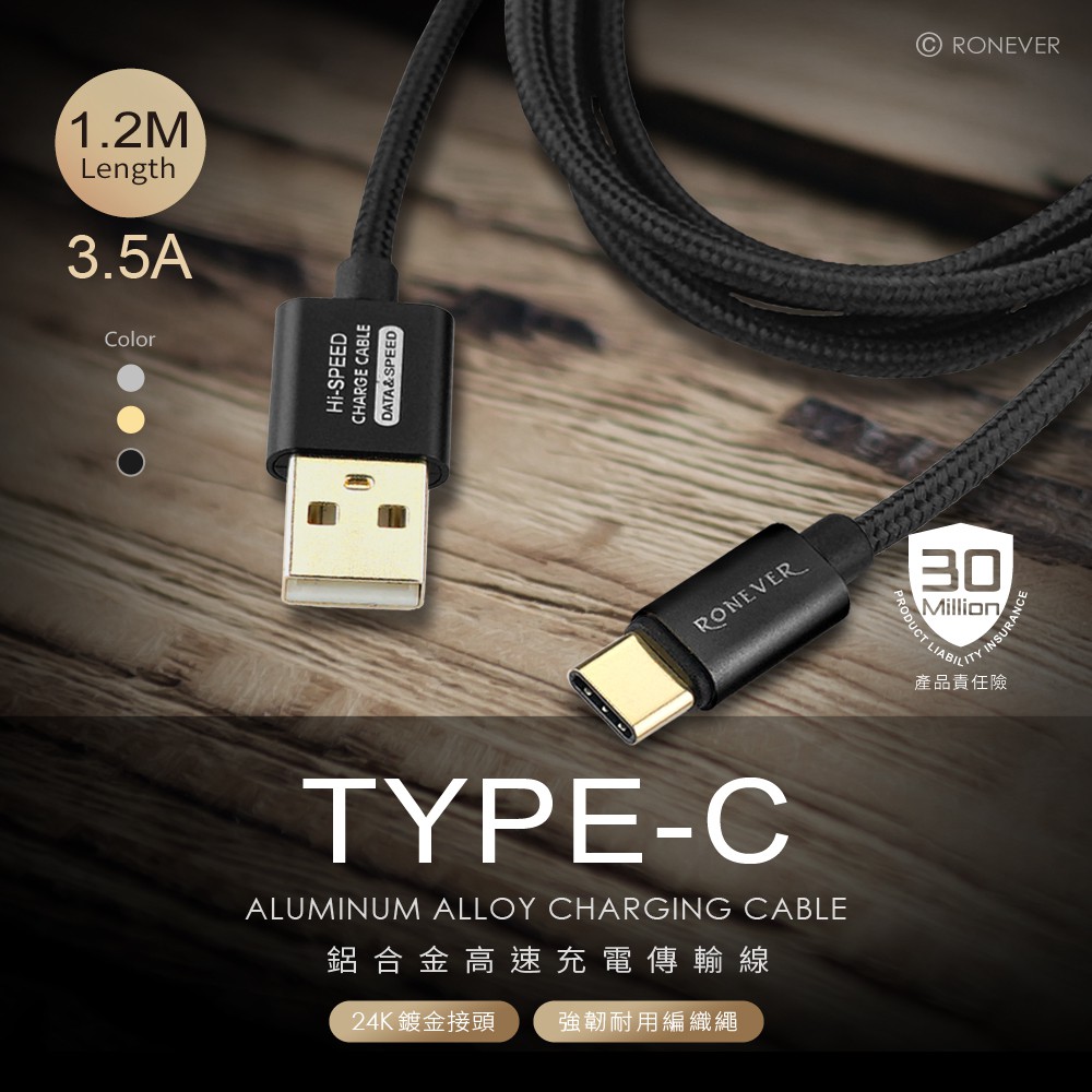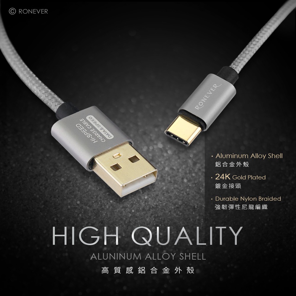 RONEVER VPC119 / 鋁合金尼龍編織充電線(TYPE-C)