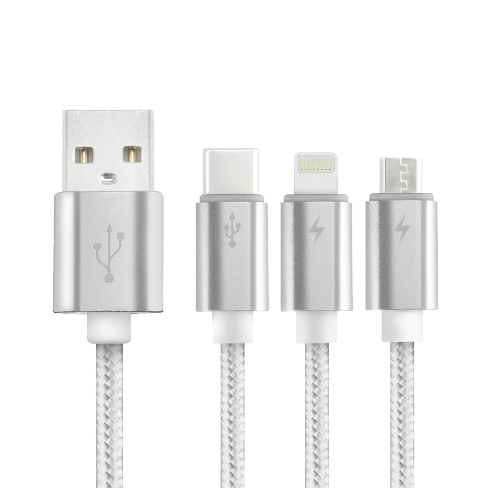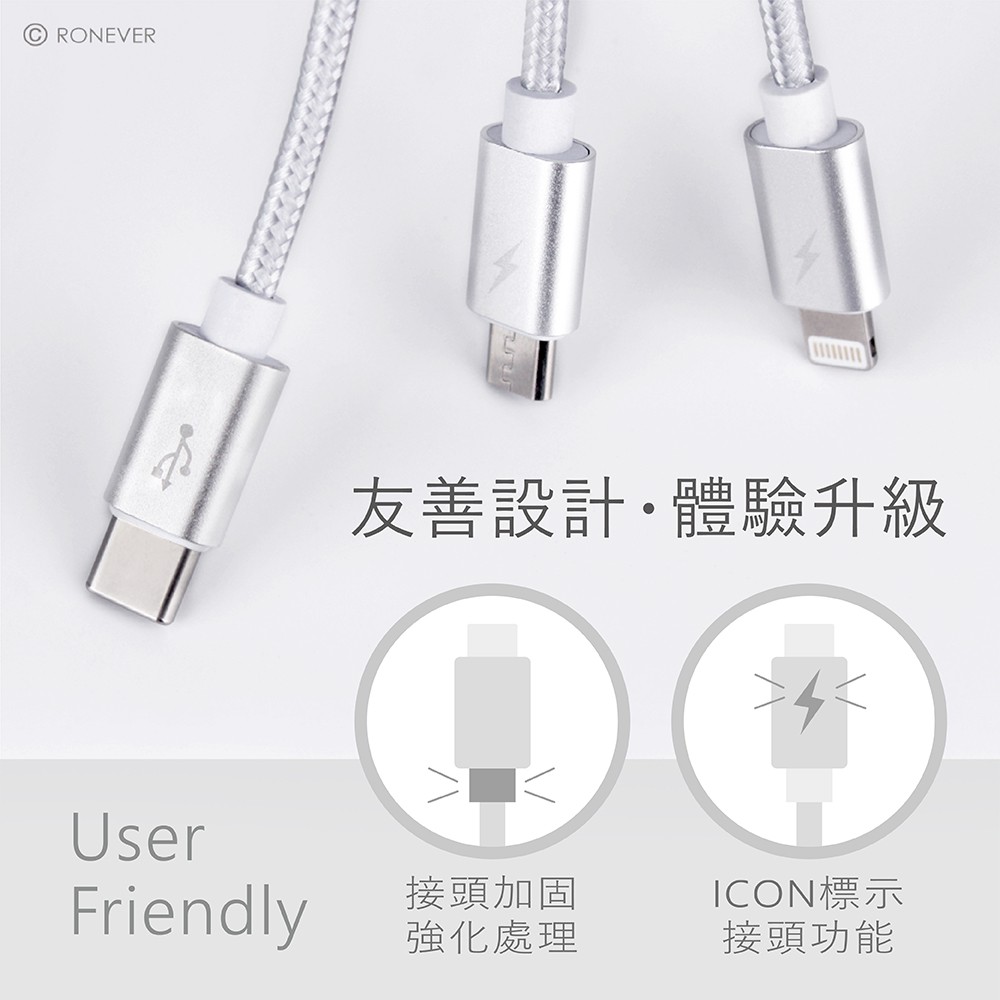 RONEVER VPC146 / 鋁合金三合一快充編織線(Micro/Lightning/Type-C) - 120cm