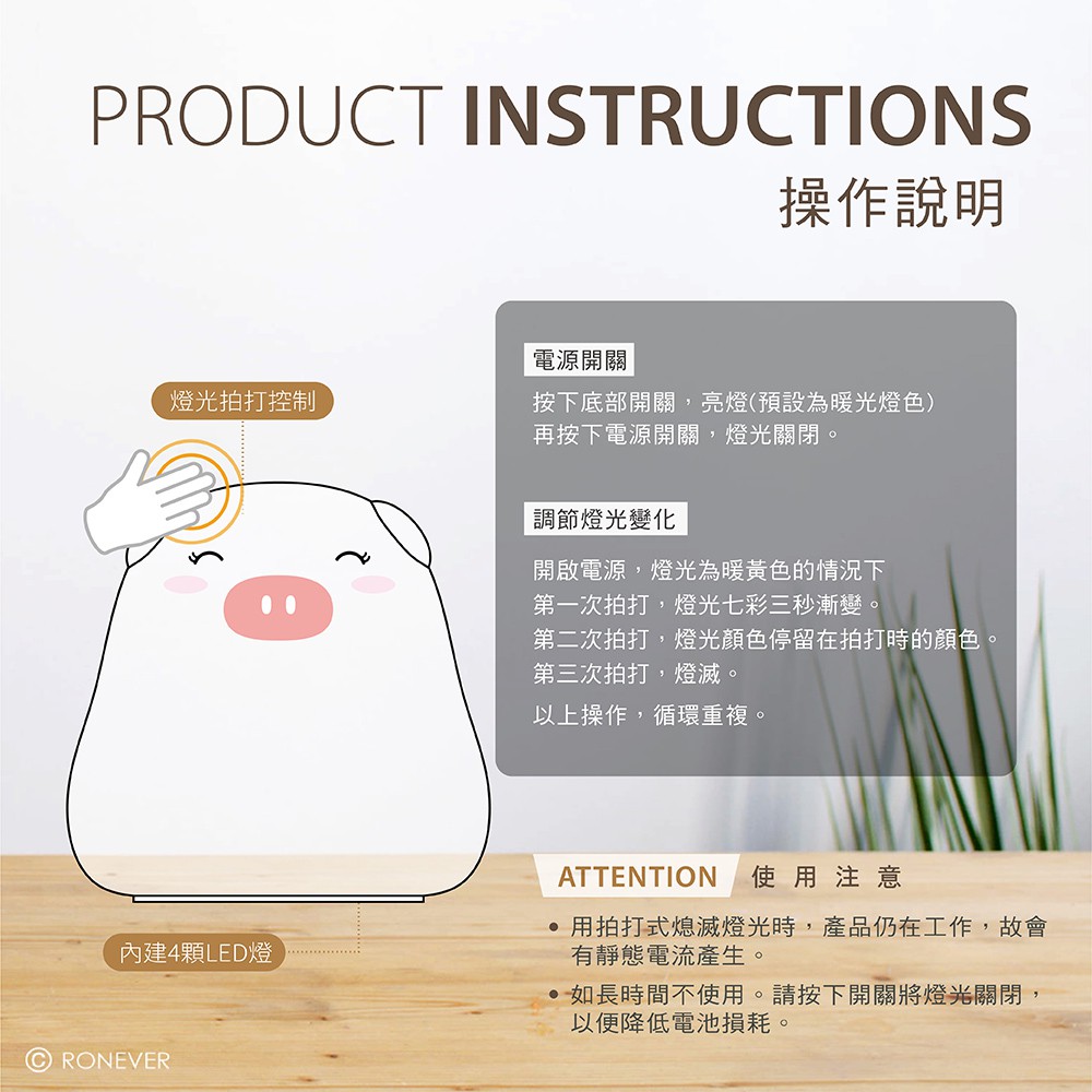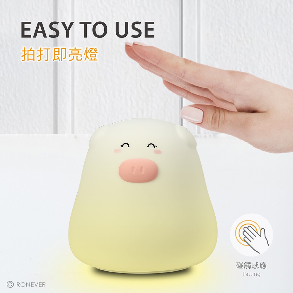 RONEVER PC386 / 療癒矽膠小夜燈-俏眉豬
