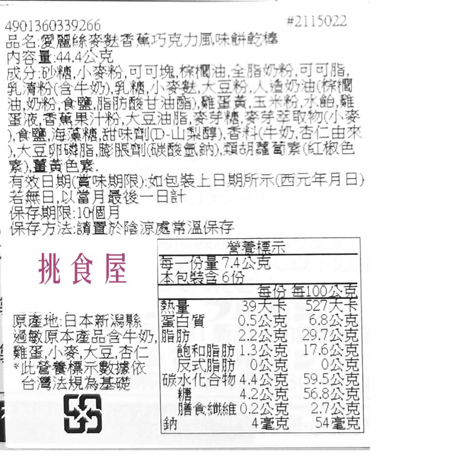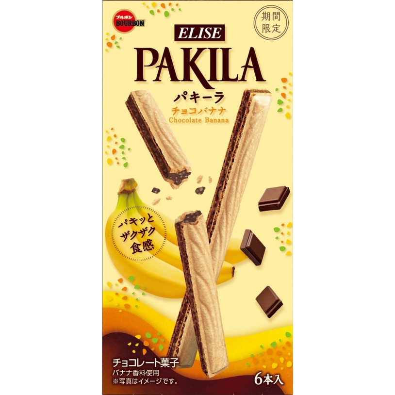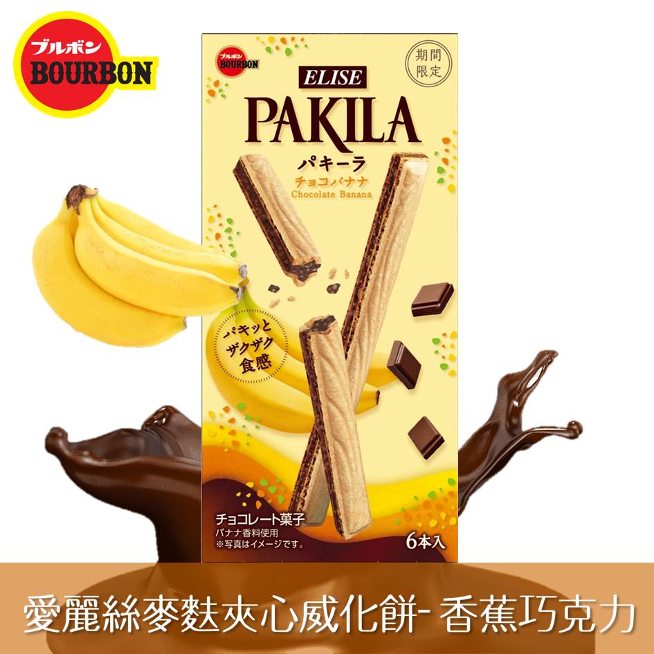 【Bourbon北日本】愛麗絲PAKILA麥麩夾心威化餅-香蕉巧克力風味 6本 44.4g 期間限定