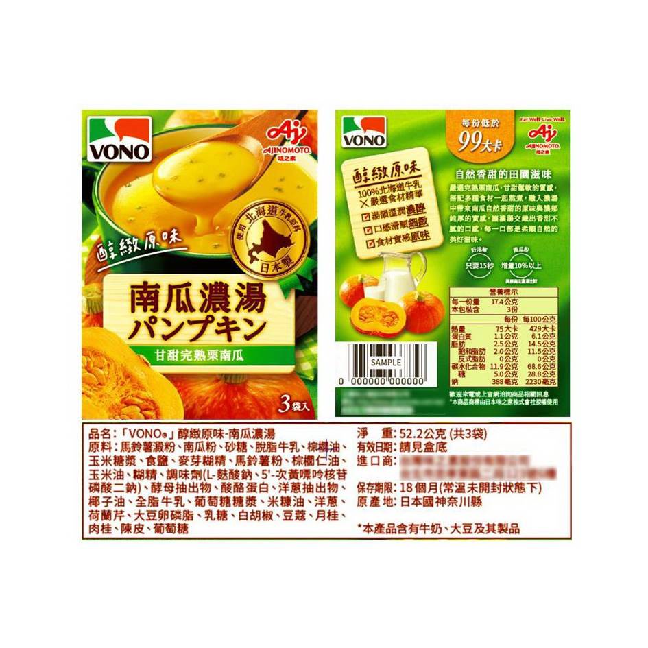 【Ajinomoto味之素】VONO醇緻原味濃湯系列3袋入-玉米濃湯/馬鈴薯/南瓜濃湯/起司濃湯/洋蔥濃湯