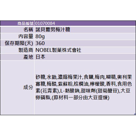 【NOBEL諾貝爾】男梅糖 76.5g 紫蘇梅汁梅糖 日本進口零食