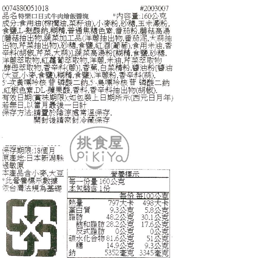 【S&B】特樂口日式濃郁白醬塊/牛肉燴飯醬塊/美味燉飯醬8份入 160g 不含肉成分 日本進口美食