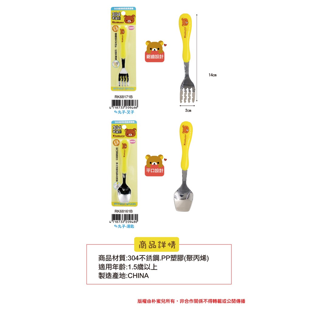 拉拉熊-造型不鏽鋼湯匙,叉子(單入)