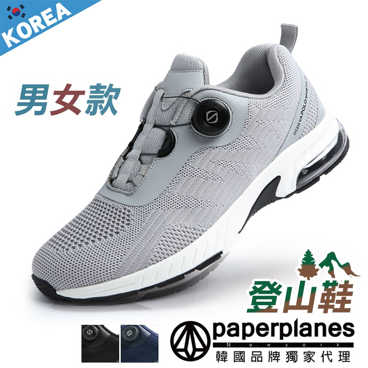 【Paperplanes】正韓製/韓國空運。男女款登山徒步專利旋轉繫帶氣墊登山鞋(0P109共3色/現貨+預購)