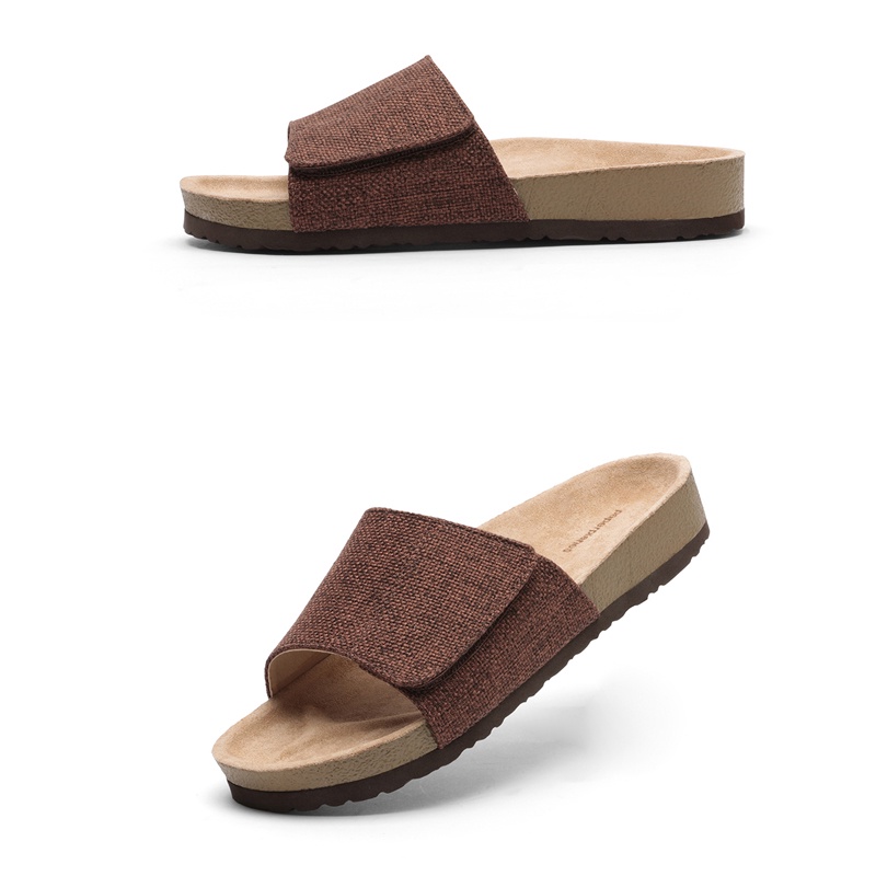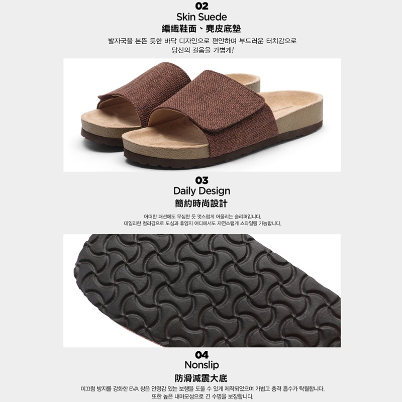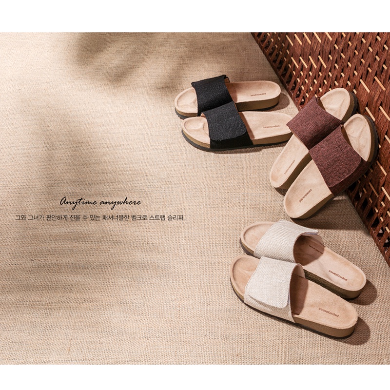 【Paperplanes】韓國空運/韓國連線。可調自黏寬楦舒適托鞋帆布情侶涼拖鞋(01526/共4色/現貨+預購)