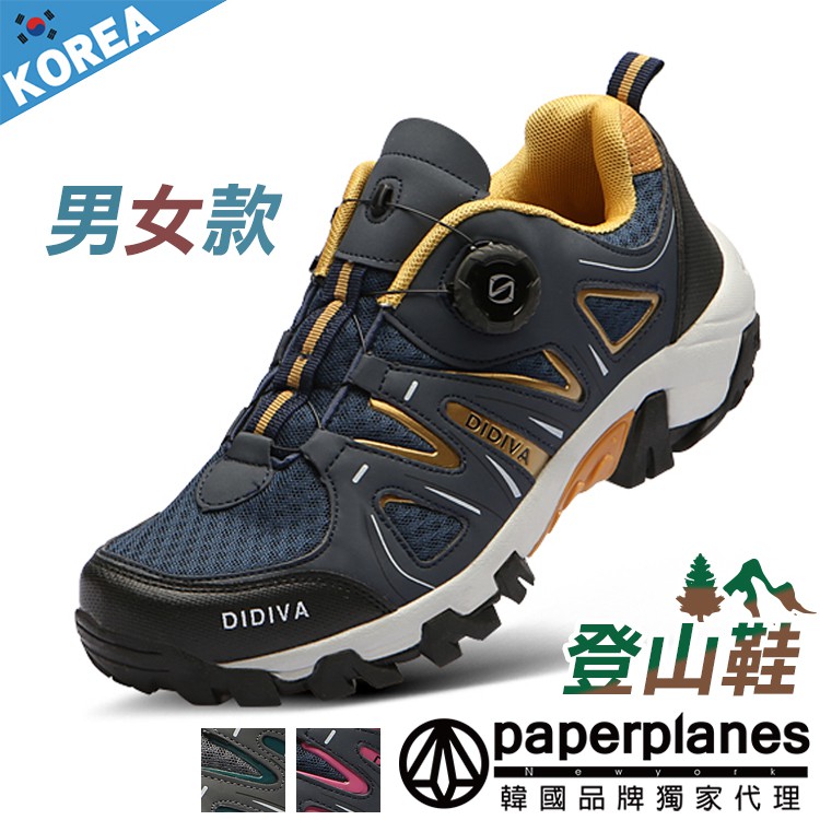 PAPERPLANES紙飛機 時尚撞色旋轉繫帶男女休閒鞋【0P105】3色 韓國空運 護趾設計 蜂巢軟墊 登山鞋