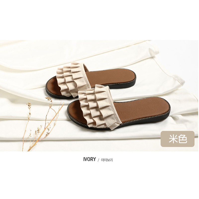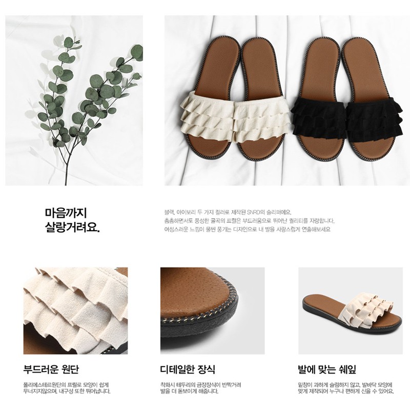 【Paperplanes】韓國空運/正常版型。浪漫花邊女神級涼拖鞋(00269共2色/現貨+預購)
