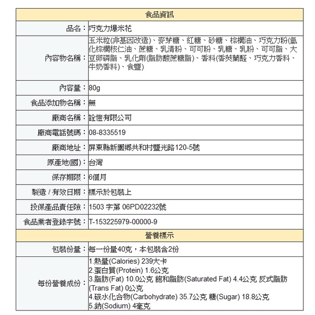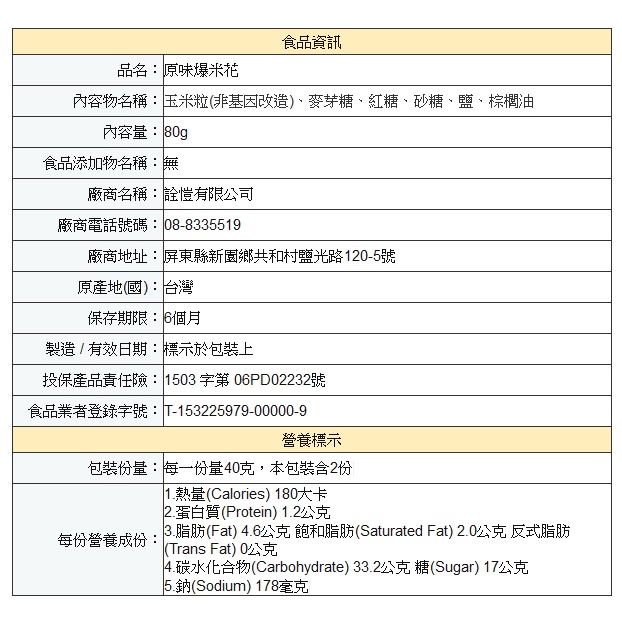 元氣家 爆米花(80g) 多種口味