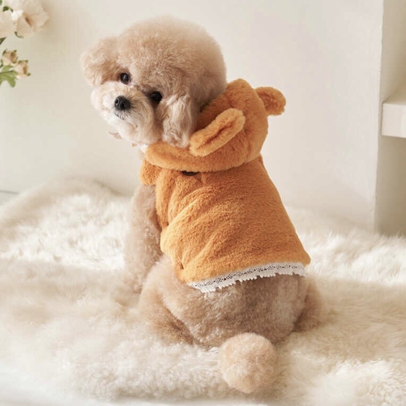 寵物服飾-毛茸茸保暖背心 Bebe Fur Crop芥末黃 韓國it’s 寵物衣服 狗狗衣服 小型犬服飾狗背心