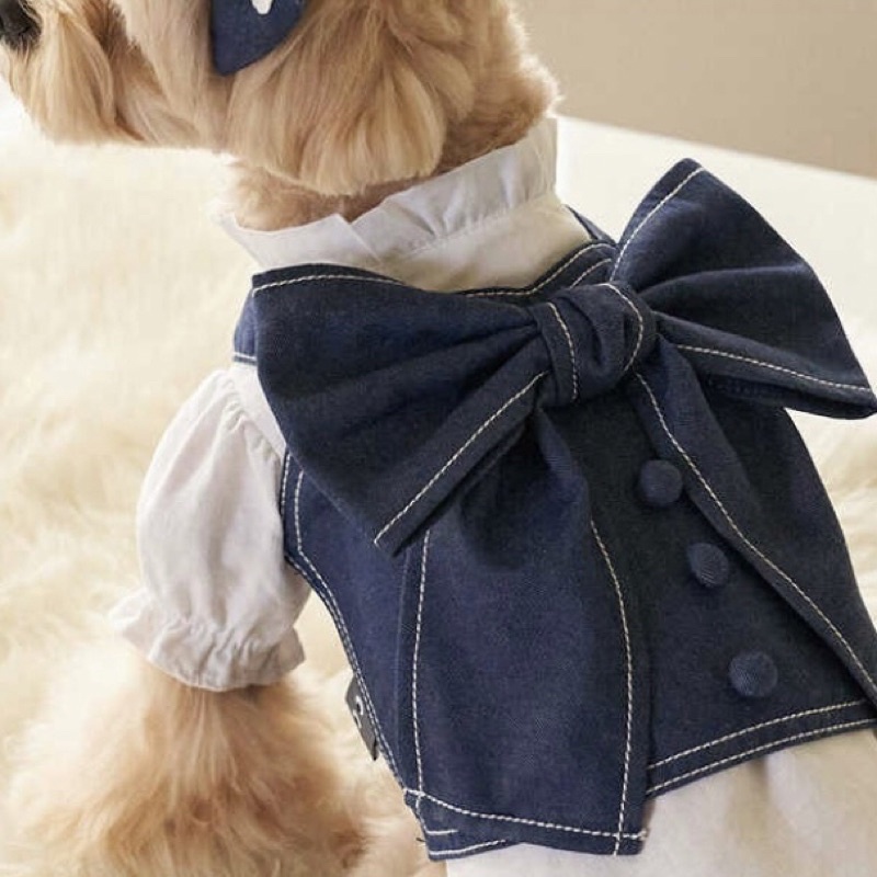 牛仔俏皮蝴蝶帶短版上衣 背心藍色尾巴韓國it’s 寵物衣服 寵物服飾 狗狗衣服 狗狗洋裝