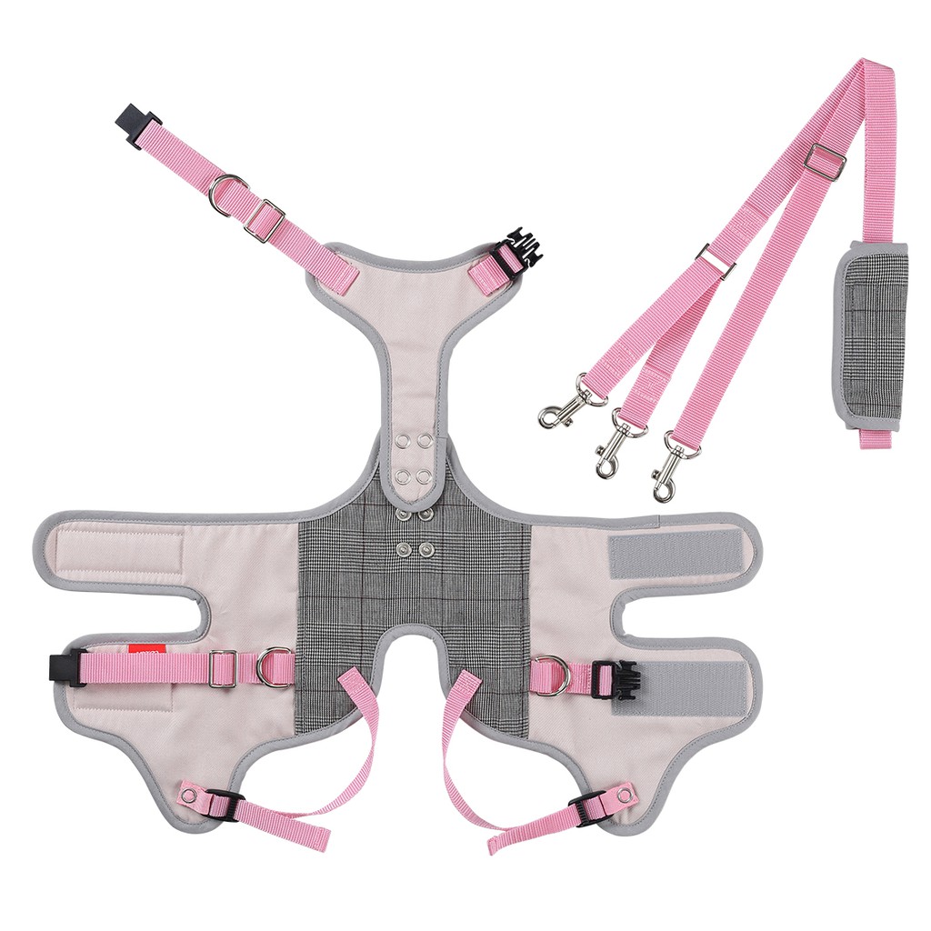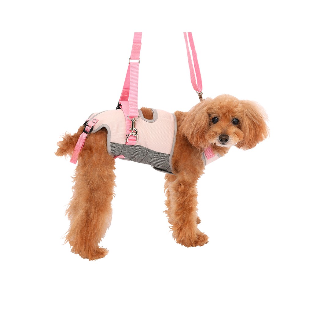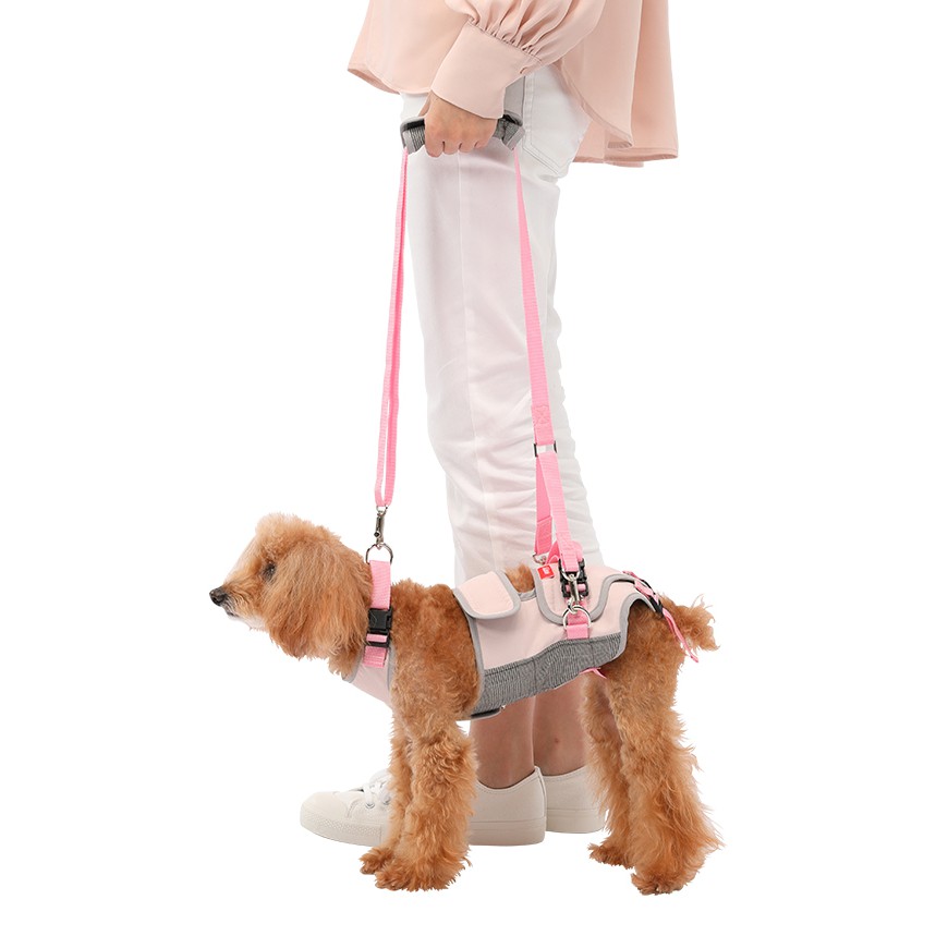 LaLaWalk 小型犬步行輔助帶-灰粉紅 老犬輔助 老犬用品 狗輔助帶 老狗牽繩 高齡犬介護 後腿輔助帶 狗復健