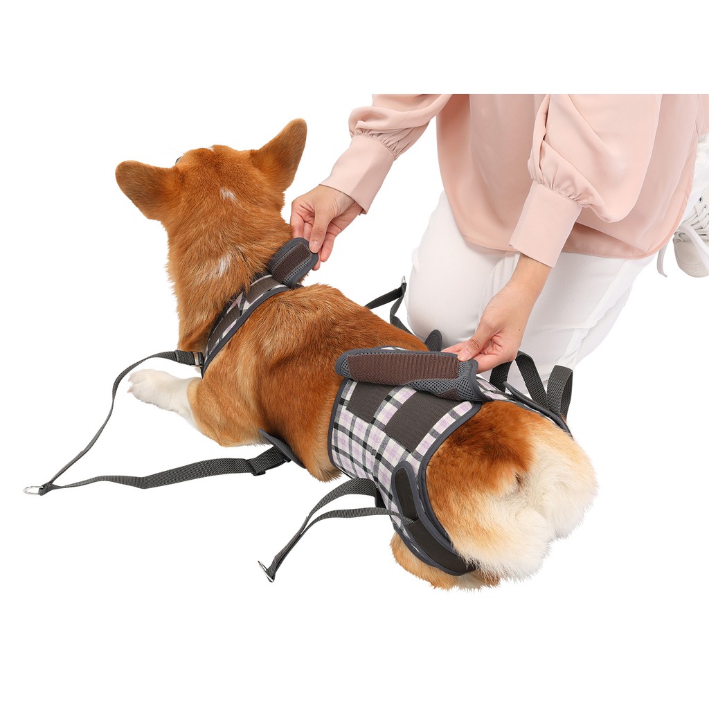 LaLaWalk 中型犬步行輔助帶-紫色格紋 老犬輔助 老犬用品 狗輔助帶 老狗牽繩 高齡犬介護 後腿輔助帶 狗復健