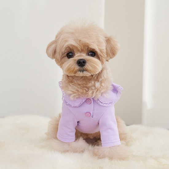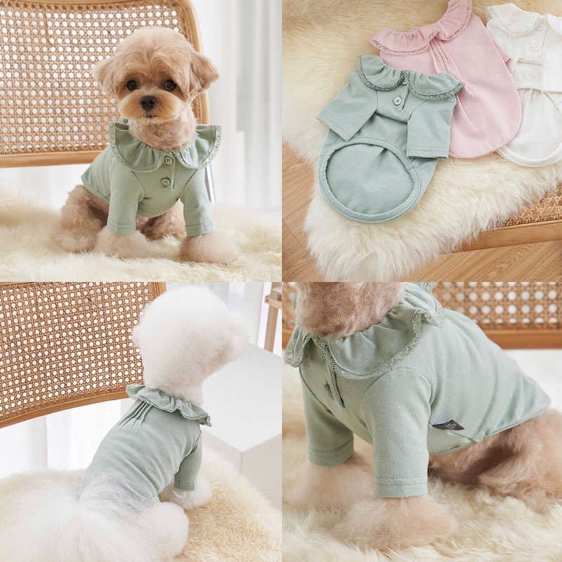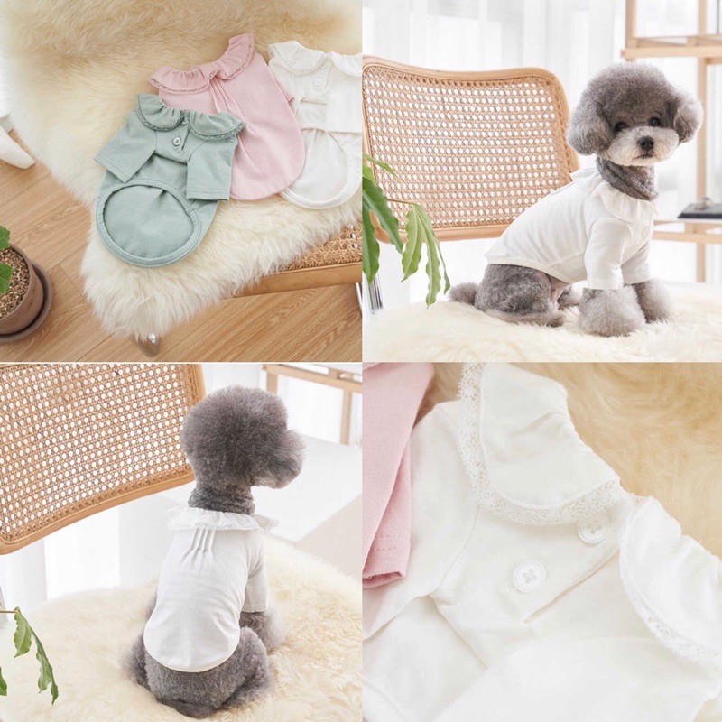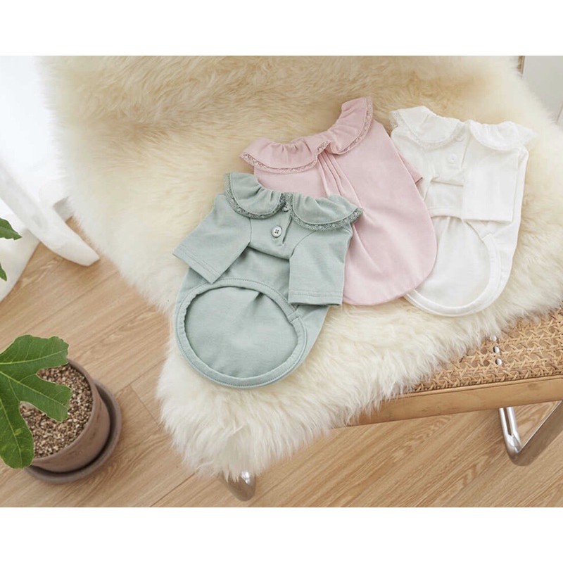 藍色尾巴-領蕾絲邊棉T-韓國it’s 寵物衣服 寵物服飾 狗狗衣服 狗狗洋裝
