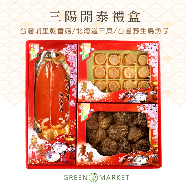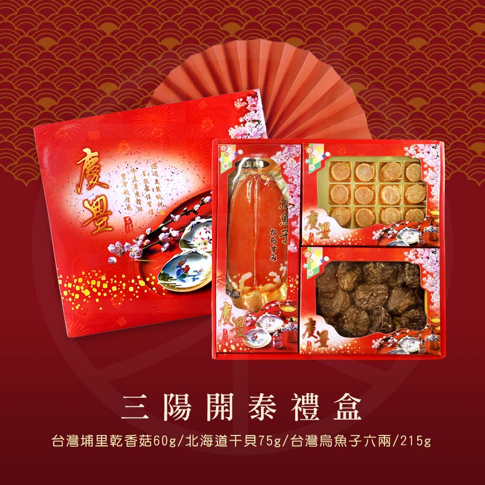 【菓青市集】三陽開泰禮盒 台灣野生厚烏魚子&日本干貝&埔里大香菇 附手提袋 限宅配