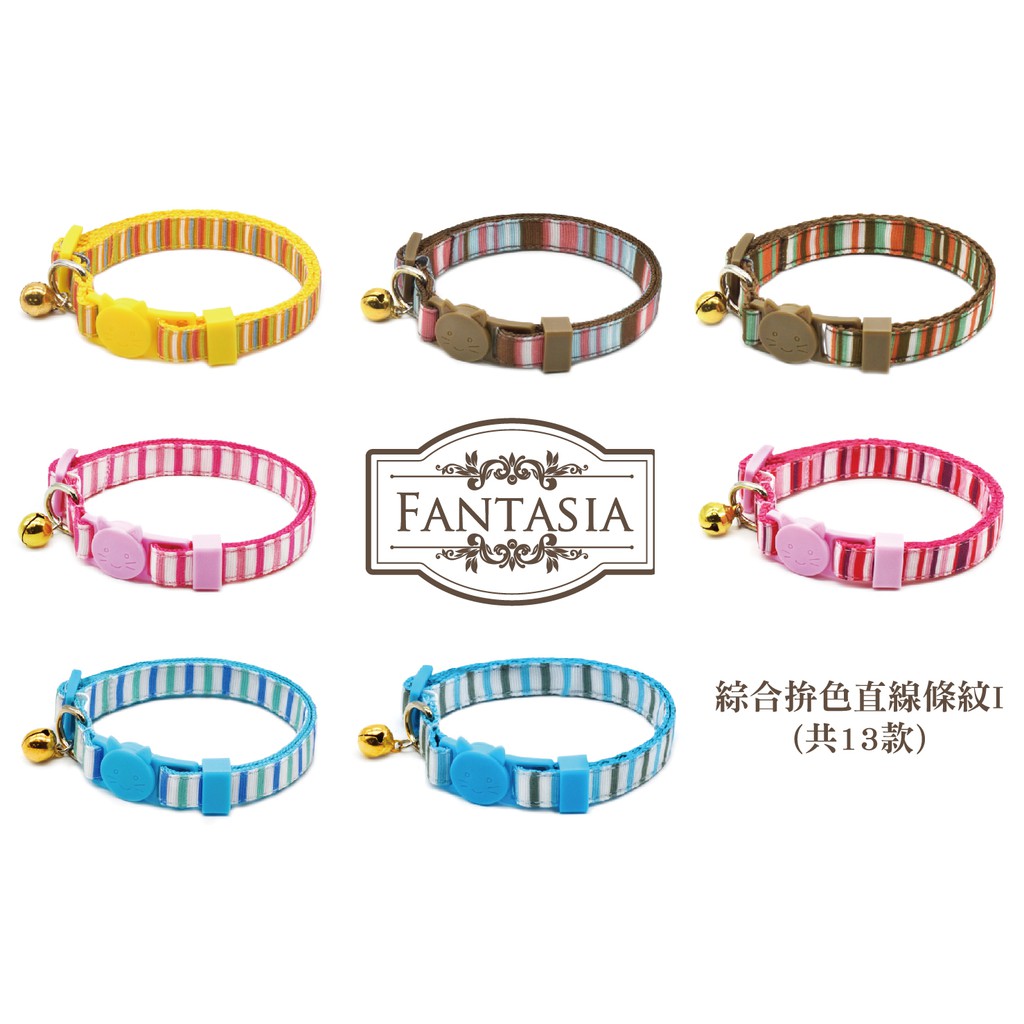 范特西亞 Fantasia【綜合拚色直條紋系列I】成貓安全項圈(S) 共13款 安全插扣 防勒 貓項圈 鈴鐺