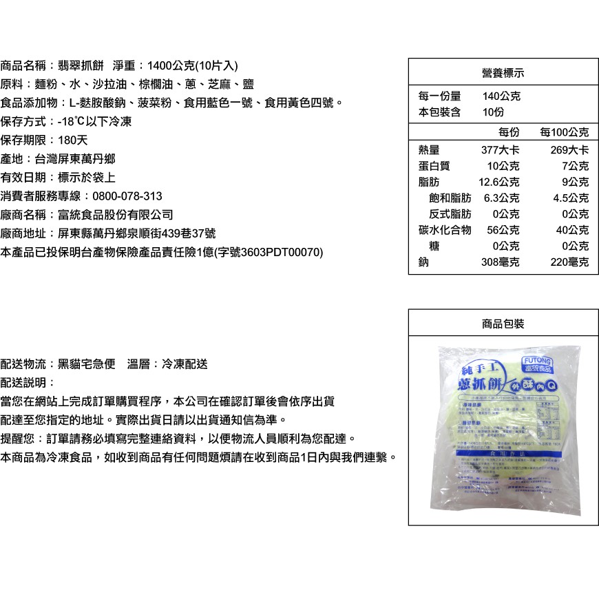 【富統食品】純手工蔥抓餅10片(原味、翡翠)