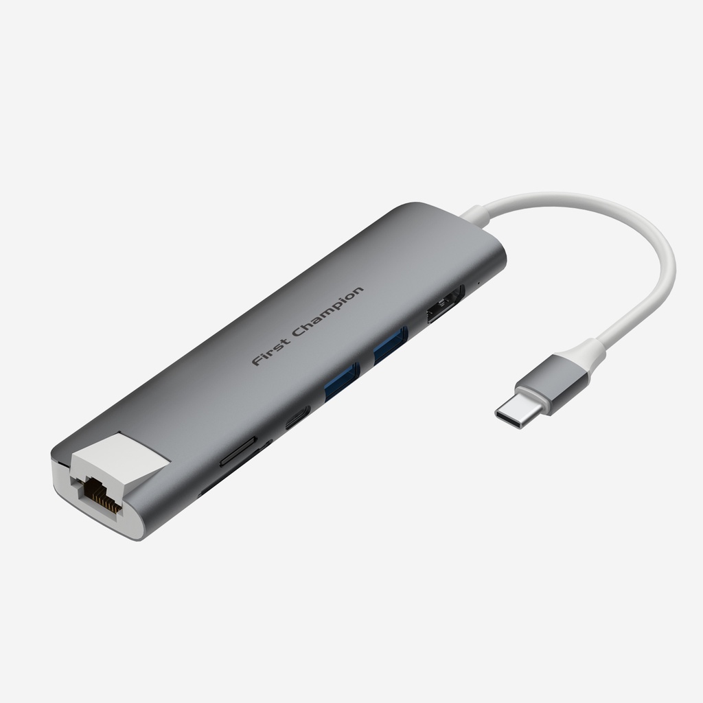 First Champion USB Type-C 集線器 7合1 with Gigabit Lan 灰色