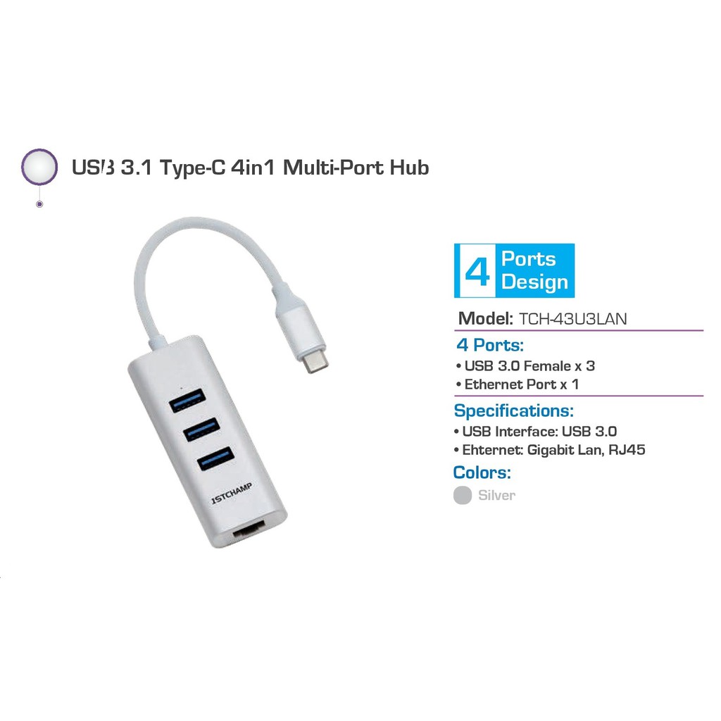 First Champion USB Type-C 集線器 - 4合1 with Gigabit Lan